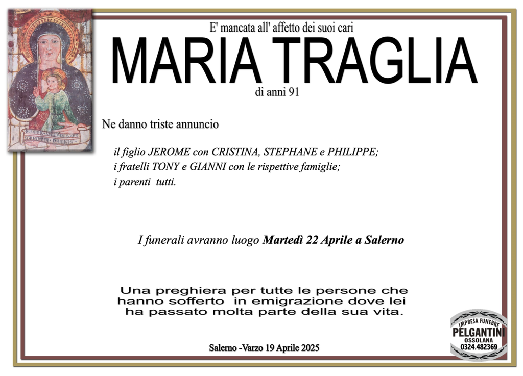 Maria Traglia di anni 91