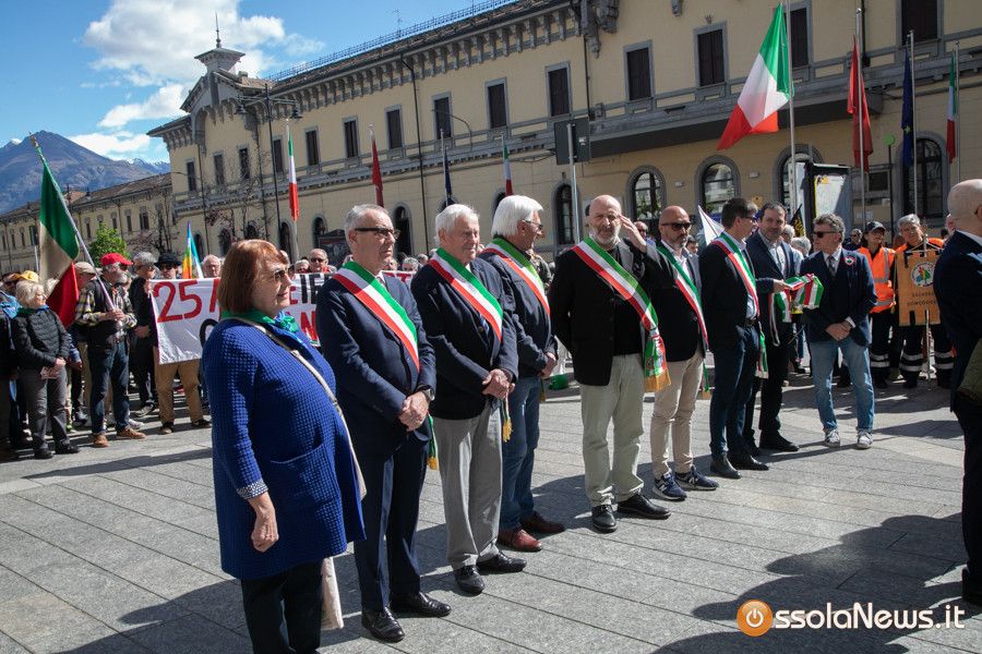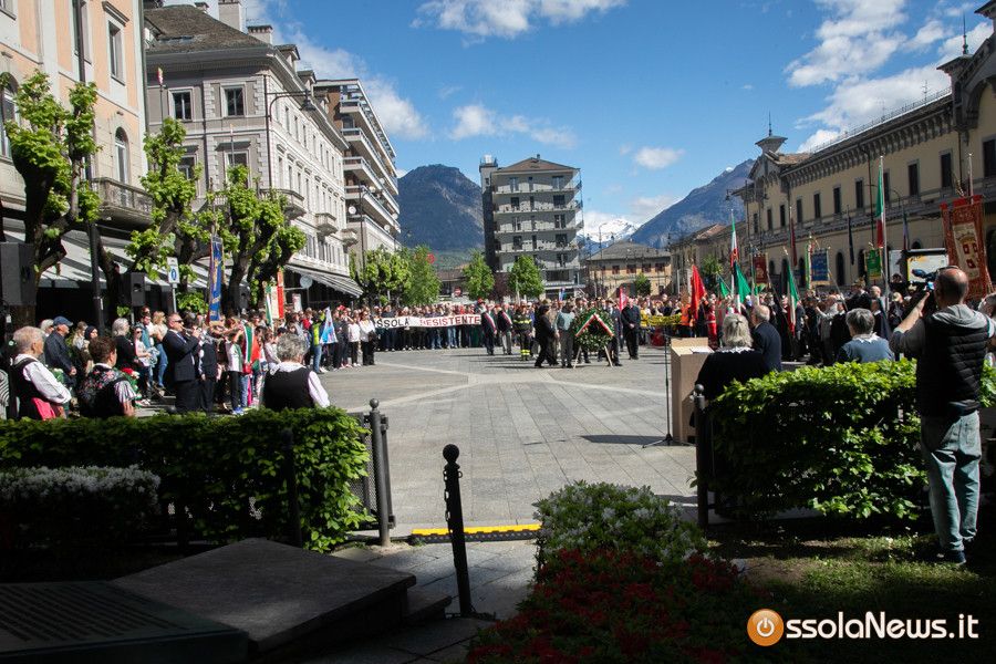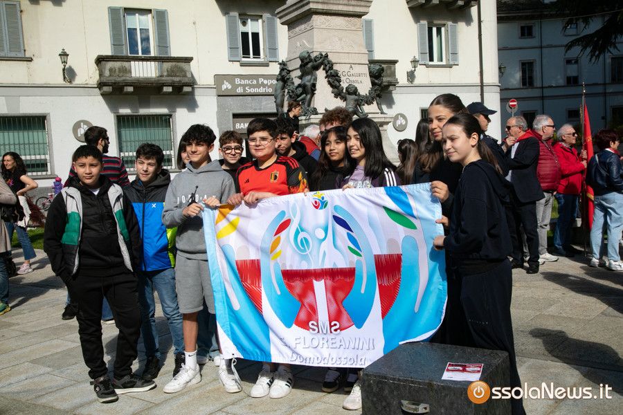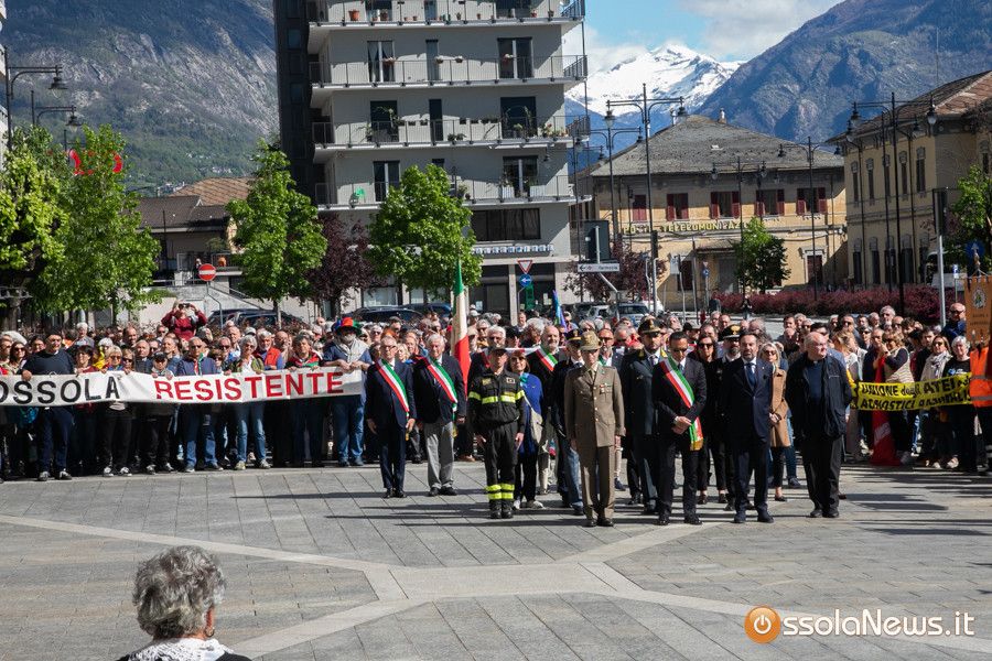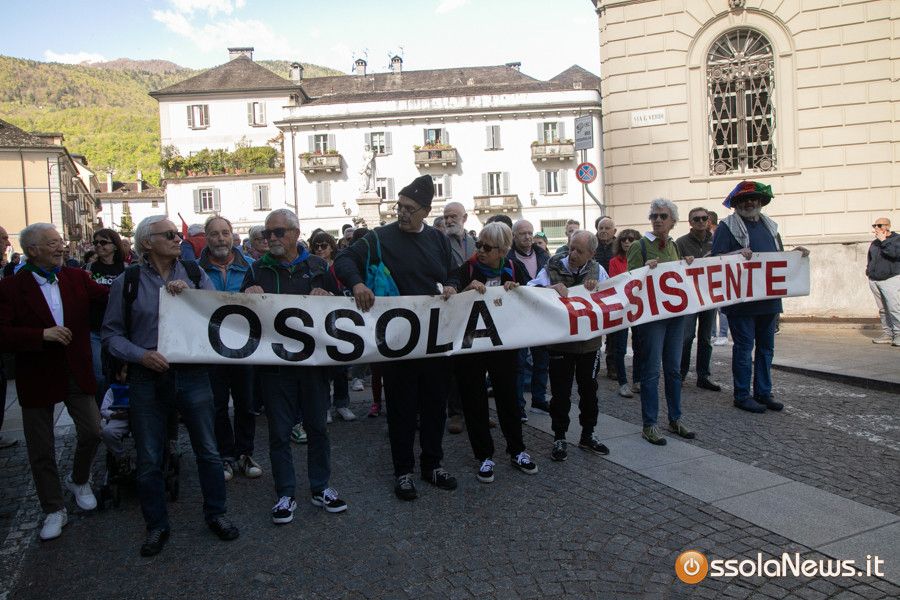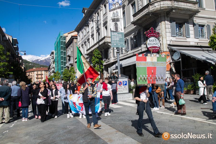 Ad aprire il corteo lo striscione “Ossola resistente” e lo stemma dell’Anpi, seguiti dai ragazzi delle scuole e da uno secondo striscione con la scritta “25 aprile: ieri partigiani, oggi antifascisti”. Il corteo, intonando “Bella ciao”, è dunque partito dal municipio di Domodossola percorrendo corso Fratelli Di Dio e corso Ferraris per giungere, infine, in piazza Matteotti, dove si è poi svolta la cerimonia ufficiale per l’80° anniversario della Liberazione.