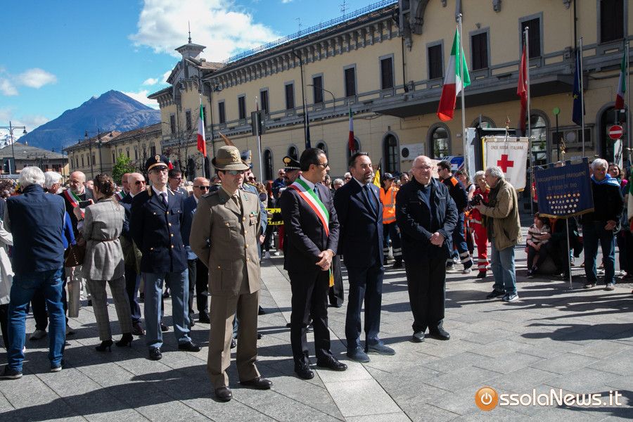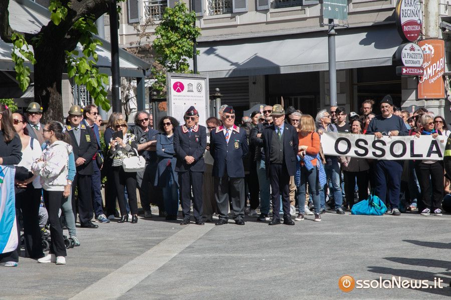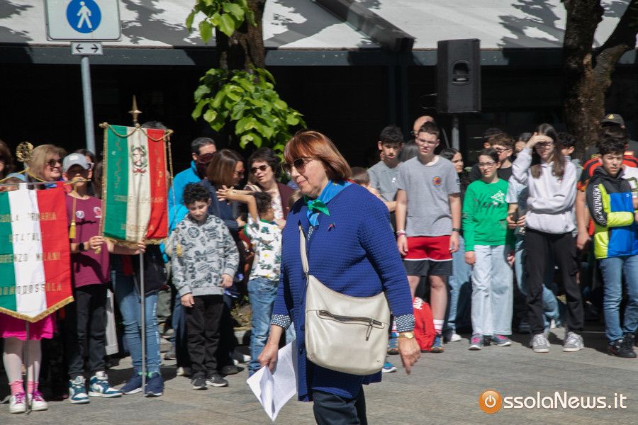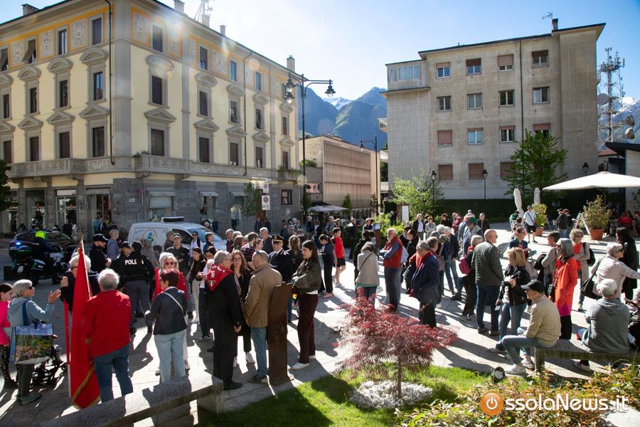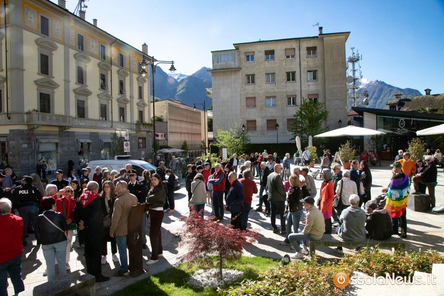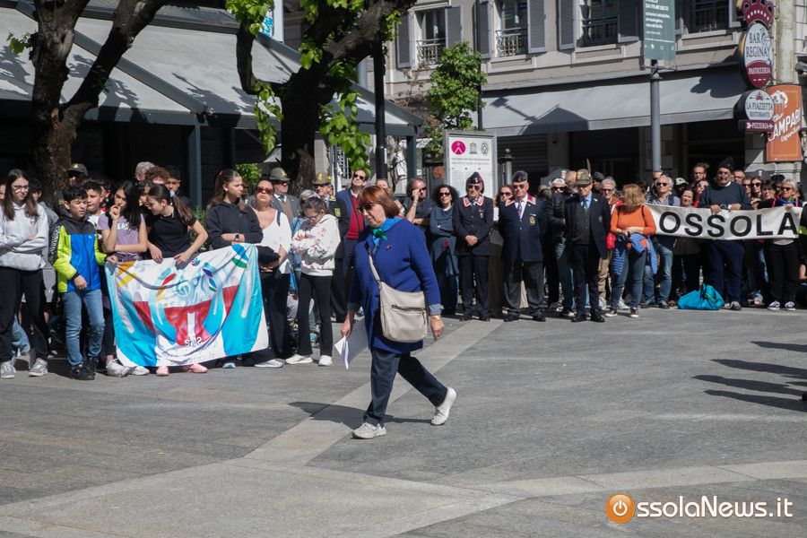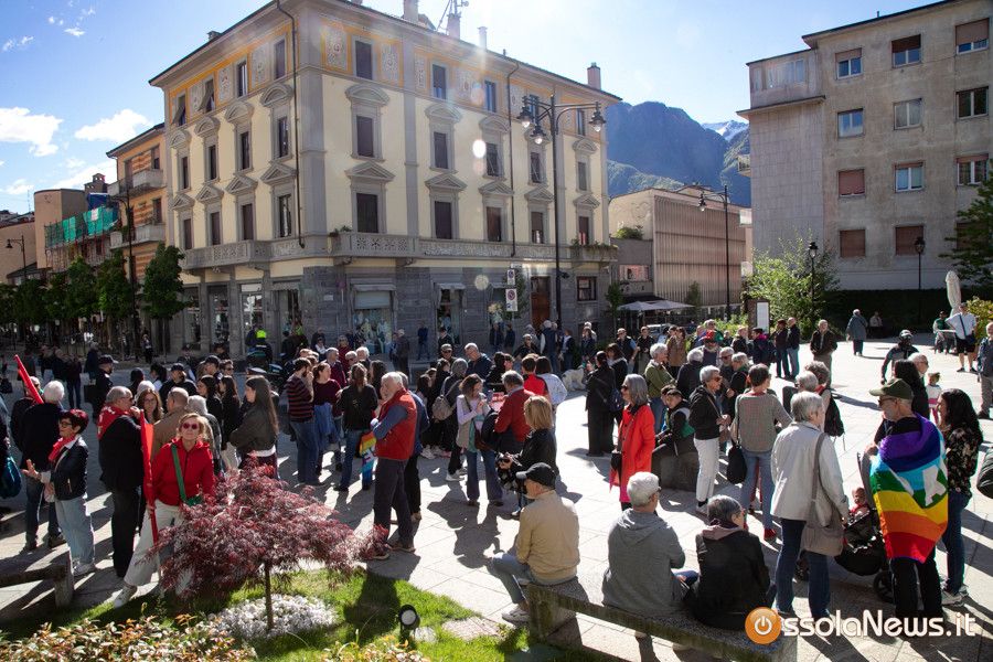 La piazza Repubblica dell’Ossola, questa mattina, era gremita: insieme ai numerosi cittadini, hanno preso parte all’iniziativa anche diverse associazioni e gruppi. Tra questi, ovviamente, tanti rappresentanti dell’Anpi, ma anche la Cgil, Libera Vco e i ragazzi delle scuole medie Floreanini, tutti con la propria bandiera. Tra i presenti anche alcune personalità di spicco, come la giornalista Giuliana Sgrena.