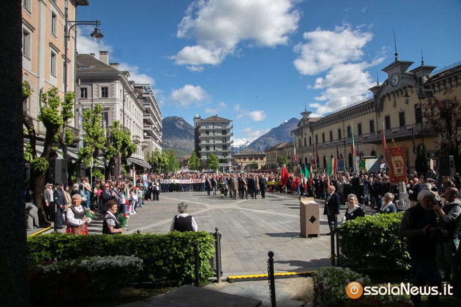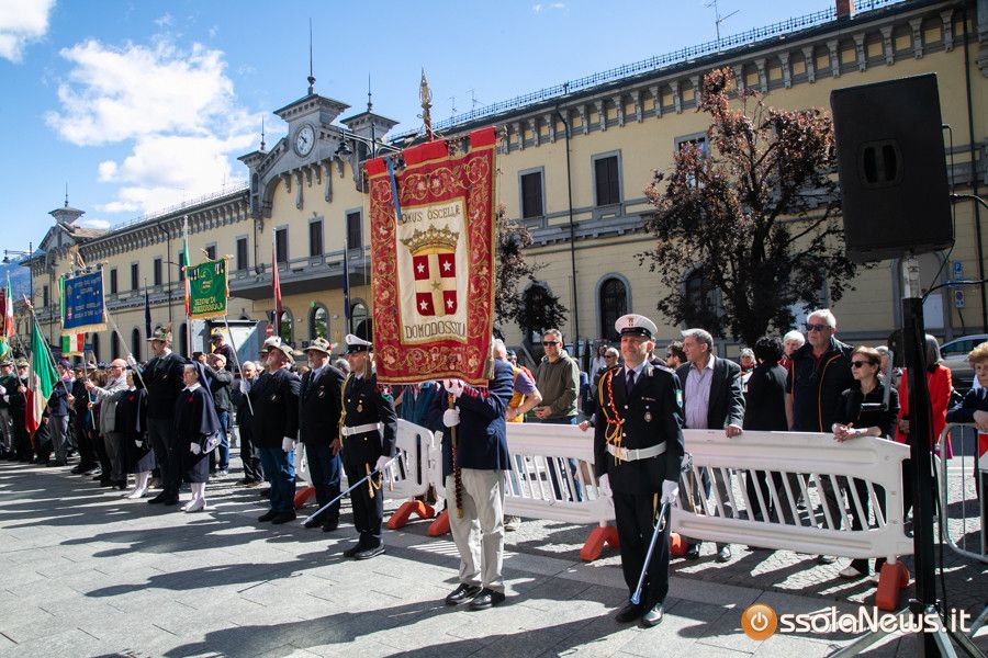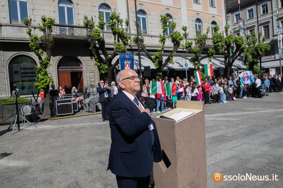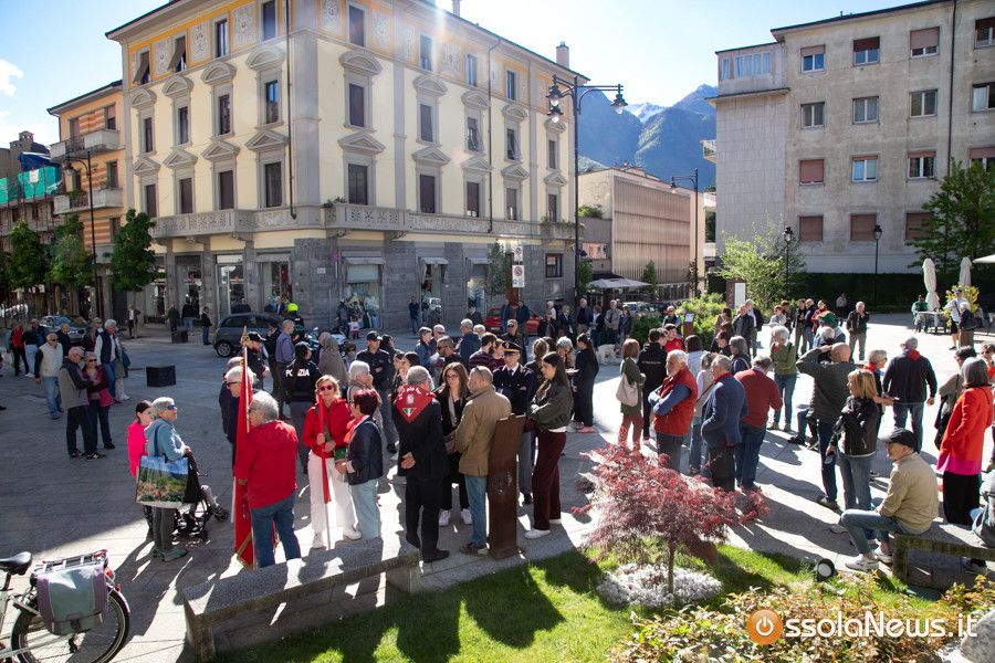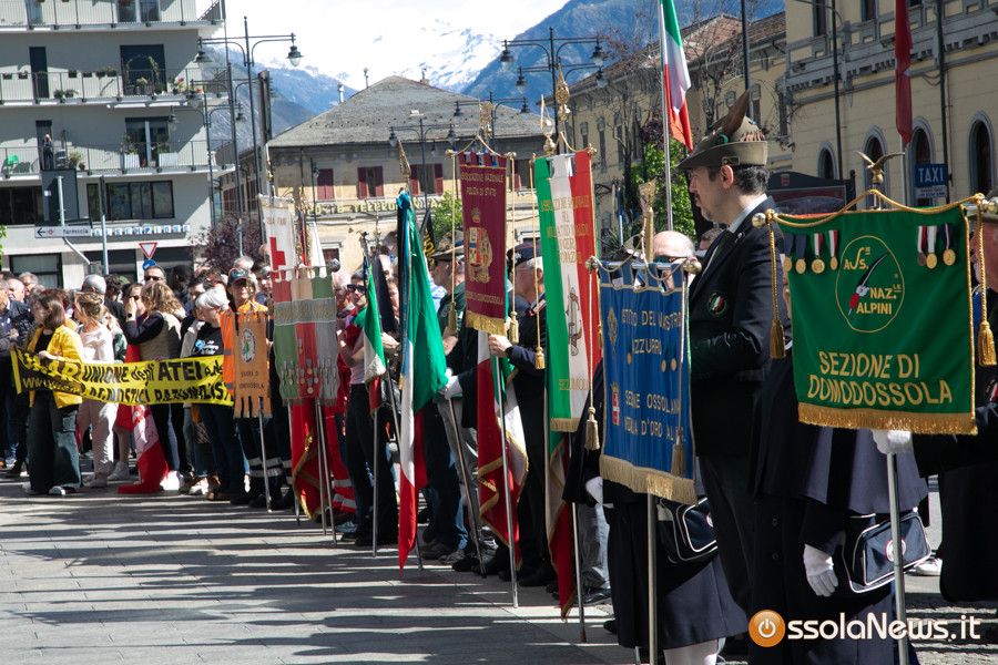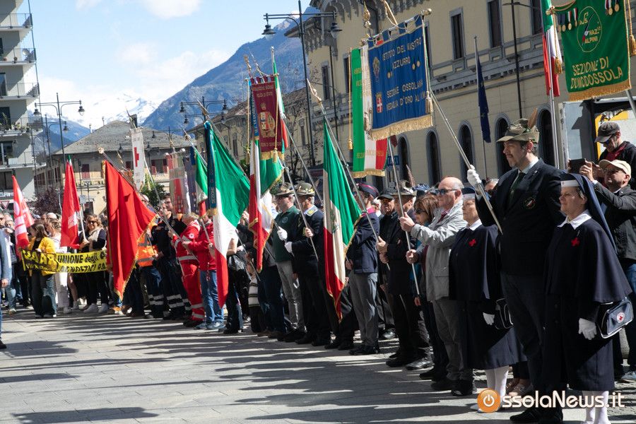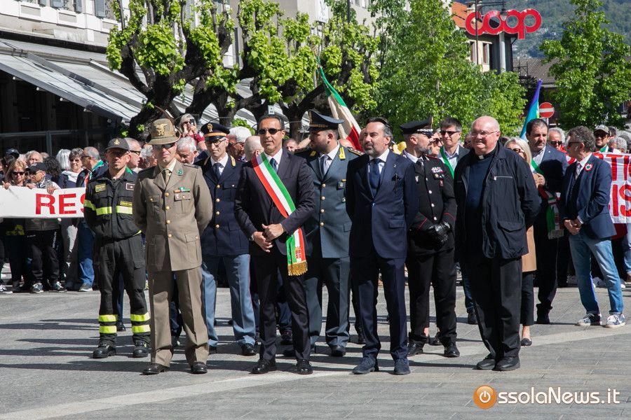 La piazza Repubblica dell’Ossola, questa mattina, era gremita: insieme ai numerosi cittadini, hanno preso parte all’iniziativa anche diverse associazioni e gruppi. Tra questi, ovviamente, tanti rappresentanti dell’Anpi, ma anche la Cgil, Libera Vco e i ragazzi delle scuole medie Floreanini, tutti con la propria bandiera. Tra i presenti anche alcune personalità di spicco, come la giornalista Giuliana Sgrena.