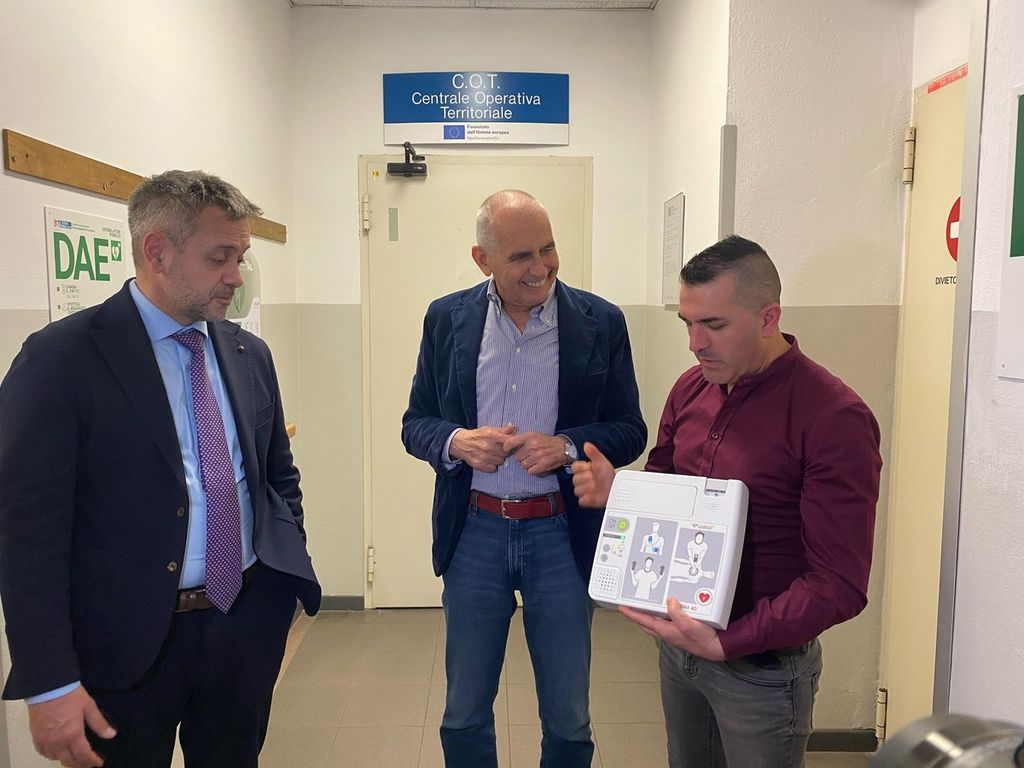 Presenti il direttore generale dell'Asl Francesco Cattel, il responsabile relazione esterne Massimo Nobili e la direttrice sanitaria di Fisiodelta Anna Annita Pacico. Prossimamente saranno anche organizzati dei corsi di formazione per il corretto utilizzo del dae.