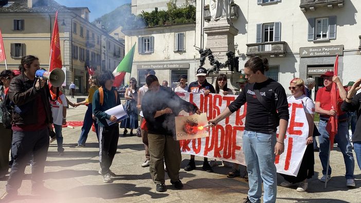 Non sono mancate le proteste e le contestazioni durante la manifestazione per il 1° maggio a Domodossola. Se da un lato i sindacalisti che sono intervenuti sul palco allestito di fronte al municipio non hanno risparmiato critiche all’amministrazione comunale della città, di cui non era presente nessun rappresentante, la principale contestazione è avvenuta ad opera di un gruppo di ragazzi, esponenti del Fronte della Gioventù Comunista.