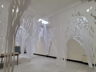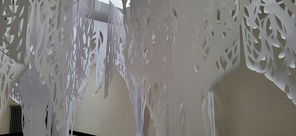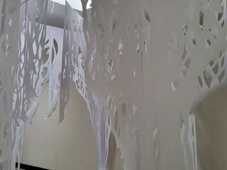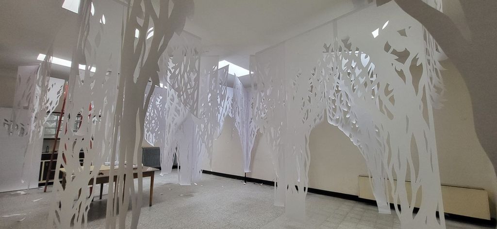 Infine, le ex cucine Fragilis Natura Silentium si stanno trasformando in una foresta di carta bianca, sospesa tra luce e ombra, che accoglierà il visitatore in un silenzio rarefatto e surreale. Si tratta dell’installazione immersiva dell'artista Matteo Capobianco Ufo5, una sorta di ambiente e performance, un viaggio attraverso una giungla artificiale fatta di strati sovrapposti di carta intagliata a mano e veli traslucidi di carta velina, a rappresentare anche la fragilità del nostro mondo.