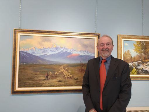 “Un pittore che ama la pittura en plein air – ha continuato Ciurleo - con cavalletto e valigetta dei colori. I protagonisti dei suoi quadri sono gli elementi naturali, le montagne principalmente che, pur stagliandosi sullo sfondo, sono il punto dove volge lo sguardo. Ed il nostro sguardo naturalmente compie la sua ascesa, un po’ mistica, verso questi giganti naturali”.