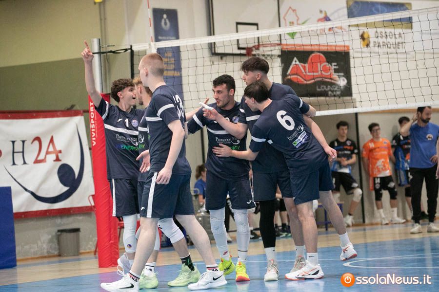 Inizialmente invece dovevano essere proprio tre le squadre partecipanti ai play-off promozione. Rimane quindi un po’ di amaro in bocca tra le fila del Domo perché, nonostante sia stato raggiunto un importante risultato sportivo, purtroppo la squadra non ha avuto la possibilità di giocarsi la promozione in serie C per un cavillo regolamentare.Venendo al match di domenica non c’è molto da dire: i domesi hanno chiuso 3 a 1, cedendo solo il terzo set, ma dominando gli altri tre parziali. Coach Nardin ha colto l’occasione per far giocare tutti gli atleti a disposizione dando l’occasione di esordire a Butti e Michetti, due ragazzi dell’Under 17 m, oltre che a Maiello Samuele, una presenza ormai stabile in Serie D.Commovente infine la risposta del pubblico ossolano che ha gremito (oltre 250 tifosi presenti) il Palaraccagni anche in un caldo pomeriggio di maggio, a campionato praticamente concluso e con una partita non di cartello visto il valore dell’avversario. Sicuramente questo è il più grande successo ottenuto della squadra e dallo staff.