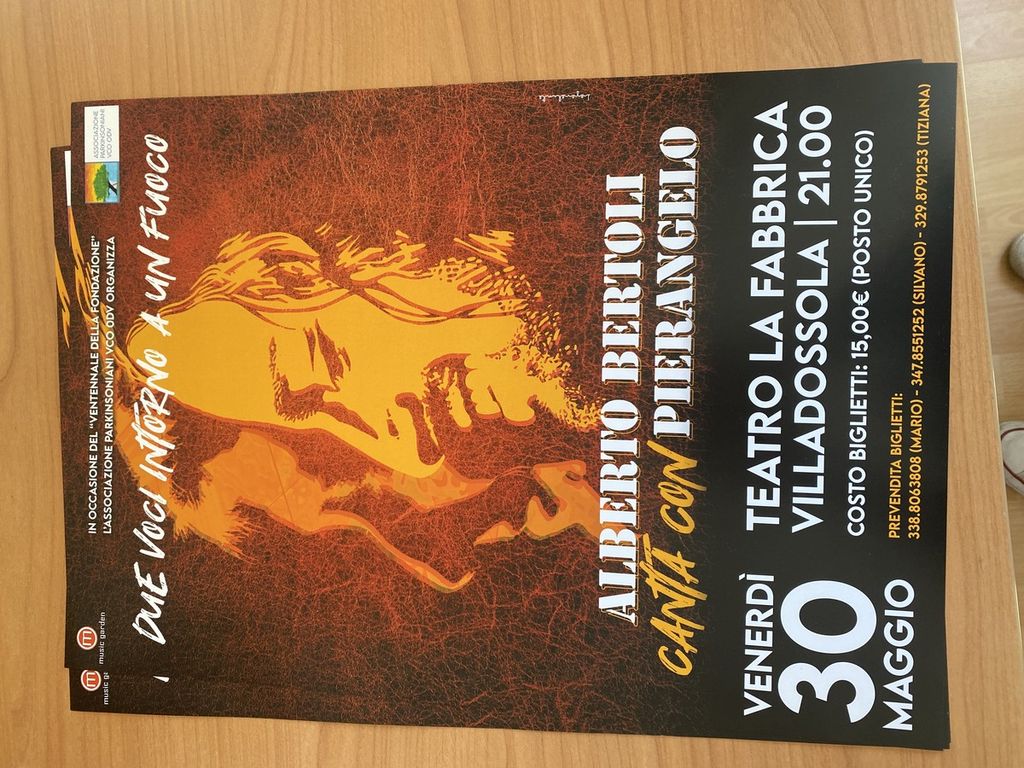 Era il 6 giugno 2005 quando fu fondata, nella provincia del Vco, l’associazione Parkinsoniani. Oggi, nel 2025, celebra vent’anni di attività a sostegno dei malati di Parkinson di tutta la provincia, a cui offre quotidianamente servizi dedicati in particolare all’attività motoria (ma non solo). Per festeggiare questo importante traguardo, l’associazione organizza un evento speciale: venerdì 30 maggio alle 21.00 al teatro La Fabbrica di Villadossola va in scena “Due voci intorno al fuoco”, un concerto del cantautore Alberto Bertoli.