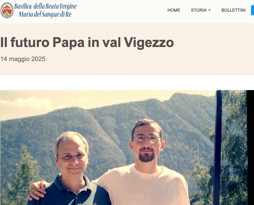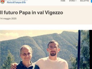 "Era il 23 agosto del 2005. Michele Falcone, allora novizio presso l'Ordine degli Agostiniani, mi aveva annunciato che quel giorno sarebbe venuto a celebrare in parrocchia a Toceno, dove ero Parroco, il suo Priore Generale, un americano. Prima di messa, nel tardo pomeriggio, attendendoli, uscii sotto il portico della parrocchiale e vidi Michele seduto al tavolino del bar con un signore distinto, intento a consumare una bevanda. Mi chiamò, avvicinandomi disse: "Ti presento padre Robert, il mio superiore". Mi colpirono subito il sorriso ed il garbo dei suoi modi. Ancor di più m'impressionò la sua umiltà: declinò la mia proposta di presiedere la Messa e concelebrò, mentre io presiedevo. Un altro particolare è ancor più eloquente. In quel tempo avevo l'abitudine d'inserire la recita dei Vespri nella celebrazione dell'Eucarestia; ricordo ancora che aveva portato con sé il libro della Liturgia delle Ore per partecipare a tutta la funzione. Rimasi meravigliato: un Superiore Generale di un ordine religioso, che contava più di duemila persone, si adattava con docilità alla gestione di un semplice parroco di montagna. Fui molto edificato dai modi gentili di quel religioso. Intuivo che l'affabilità discreta del comportamento era frutto di di un'intensa vita spirituale. Padre Michele, in seguito, mi disse che il soggiorno di padre Robert a Toceno si svolse dal 22 al 25 agosto. Durante quei giorni ebbe modo di compiere alcune escursioni in montagna e soprattutto di visitare il Santuario della Madonna del Sangue qui a Re. Quando nel tardo pomeriggio di giovedì 8 maggio il cardinale Robert Prevost, eletto Papa col nome di Leone XIV, è apparso alla loggia della Basilica di San Pietro, ho letto la sua biografia e, subito, mi sono ricordato di quell'incontro”.