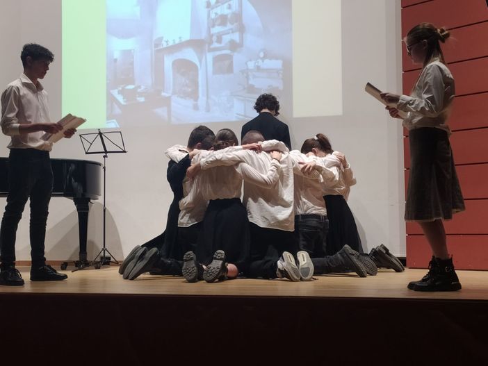Applausi, emozione e commozione ieri sera per la lettura scenica “26 febbraio 1945. Il martirio di Don Giuseppe Rossi uomo di pace per la sua gente”. Lo spettacolo a cura della Compagniadellozio e delle classi 3 C e 3G della scuola secondaria di I grado Gisella Floreanini di Domodossola è stato presentato nell'aula magna della scuola, gremita. In prima fila il parroco di Castiglione don Fabrizio Cammelli, il sindaco di Calasca Castiglione Silvia Tipaldi, l'assessore del comune di Domodossola Gianluca Iervasi, il parroco di Domodossola don Vincenzo Barone con il suo collaboratore e insegnante di religione della scuola don Giacomo Bovio.