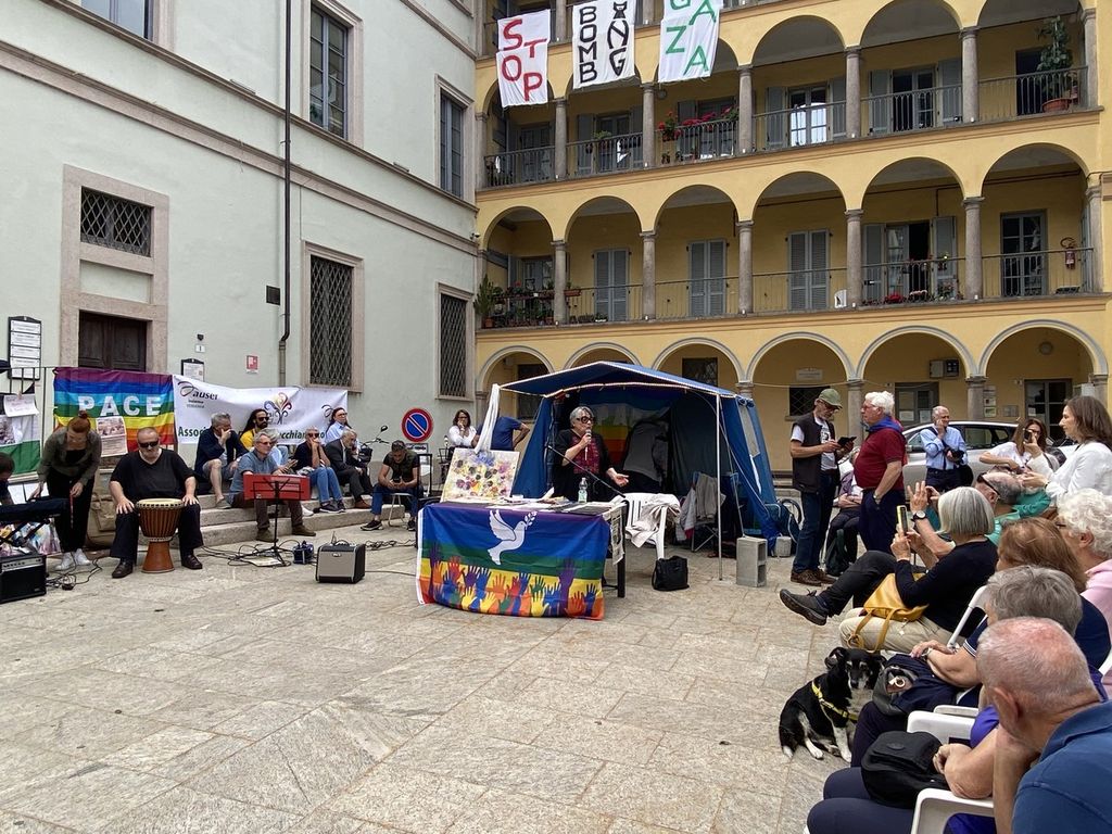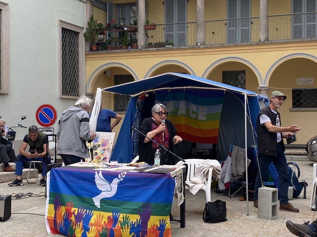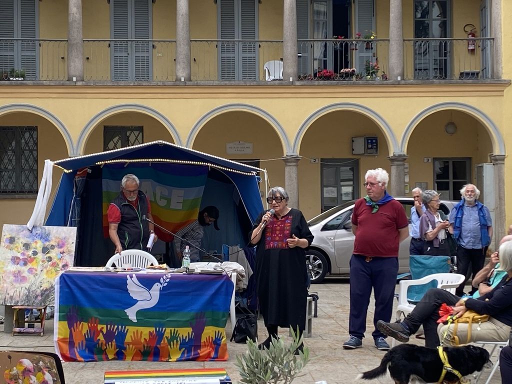 Morgantini si è rivolta al pubblico e ai volontari che per ben sei giorni - dal 23 al 28 maggio - si sono alternati per mantenere attivo il presidio 24 ore su 24, esprimendo la propria vicinanza al popolo di Gaza attraverso un digiuno a staffetta: “È importante il digiuno, la partecipazione anche con il proprio corpo. Perché non sono solo le parole, ma anche i nostri gesti, il nostro amore per la giustizia, che in questo tempo così oscuro vengono cancellati. Sembra di vivere in un mondo alla rovescia. Ma noi qui presenti amiamo la vita, come anche la popolazione di Gaza ama la vita, che però le viene strappata”.
