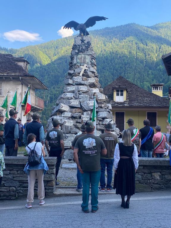 La seconda giornata del Centenario del Gruppo Alpini di Vanzone con San Carlo è iniziata ufficialmente, alle ore 18, con l’alza bandiera presso il Monumento dei Caduti, dove i ragazzi delle scuole medie di Vanzone hanno cantato l’inno d’Italia e la “Leggenda del Piave”.