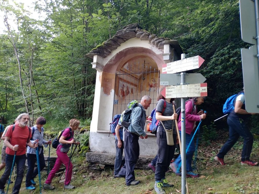 Alla Madonna delle Grucce gli alpini di Cosasca hanno offerto una seconda colazione il gruppo ha poi raggiunto, attraversando il sentiero a mezzacosta, Trontano all'arrivo all'area feste c'è stato un aperitivo offerto dalla Pro Loco e il pranzo a base di polenta e tapelucco preparato da Insieme per Cosasca. La ricerca storica e il recupero delle tre leggende, che si sono tramandate negli anni legate al sentiero e alla tragica morte di una sposa, sono state curate dall'associazione Culturale Navasco e sono state riportate in due cartelloni posati uno Cosasca e l'altro a Trontano.