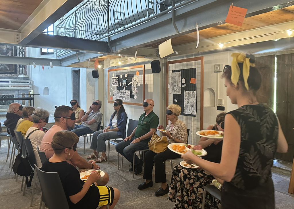 A Druogno l'inaugurazione della mostra “Oltre” ha dato il via alla seconda edizione del Festival Cantastorie “Senti(amo)ci”. Un mese di eventi il cui tema centrale intorno al quale di svilupperanno tutti gli appuntamenti è la speranza di poter vedere oltre attraverso l'arte e quindi con esposizioni, spettacoli, eventi musicali, cineforum e workshop. La rassegna – organizzata dalla Cooperativa Sfera in collaborazione con il Comune di Druogno e la Provincia del Verbano Cusio Ossola – nasce dall'idea di voler dare una voce a tutti per comunicare liberamente e per contrastare le disuguaglianze e le disparità. «L'idea del festival – spiegano le organizzatrici Aretha Mietto e Paola Campini – nasce dal voler dare la parola a tutti per poter esprimersi liberamente: ovvero che tutti possano avere uno spazio e una libertà all'interno di questo mondo che purtroppo a volte ci lascia un po' costretti e arginati. Il titolo della nostra rassegna “Senti(amo)ci” con questo “amo” tra parentesi sta infatti a sottolineare una richiesta di ascolto esterna ma racchiude anche il messaggio di ascoltarsi e amarsi dal nostro interno. A partire da questo, ogni anno creiamo un tema che possa parlare di inclusione, valorizzazione delle differenze e anche di visione da diversi punti di vista». Il tema di quest'anno “Cantastorie Speciali”, è un invito a guardare oltre le differenze, valorizzando le unicità individuali e promuovendo una cultura dell’inclusione, con particolare attenzione alla disabilità vissuta non come limite, ma come opportunità. Il primo appuntamento della rassegna con l'esperienza dell'aperitivo al buio ha riscosso un grande successo: dopo la presentazione del festival e delle opere a cura dell'autore i partecipanti (con gli occhi coperti da una mascherina) si sono messi alla prova e per qualche attimo hanno compreso - stimolando gli altri sensi - come può essere la vita di un non vedente. Non una prova di abilità ma un momento di consapevolezza utile a comprendere se stessi e gli altri. «La mostra con le opere di Adriano (Nanus), vigezzino di adozione, ci invita a scoprire scorci e paesaggi della Vigezzo che ci danno la possibilità anche di guardare oltre. E' una mostra da scoprire e da costruire: i visitatori potranno lasciare bigliettini con messaggi, di speranza, o delle semplici parole che si potranno 'pescare' da ritagli di giornale in nome proprio della libertà», concludono le orgnizzatrici. Gli eventi – che si svolgeranno principalmente presso il Centro Culturale San Giulio – proseguiranno questa sera, domenica 13 luglio, con il concerto Candle Light con il duo “MarkYle”, voce e chitarra, immerso nella luce suggestiva di un mare di candele.