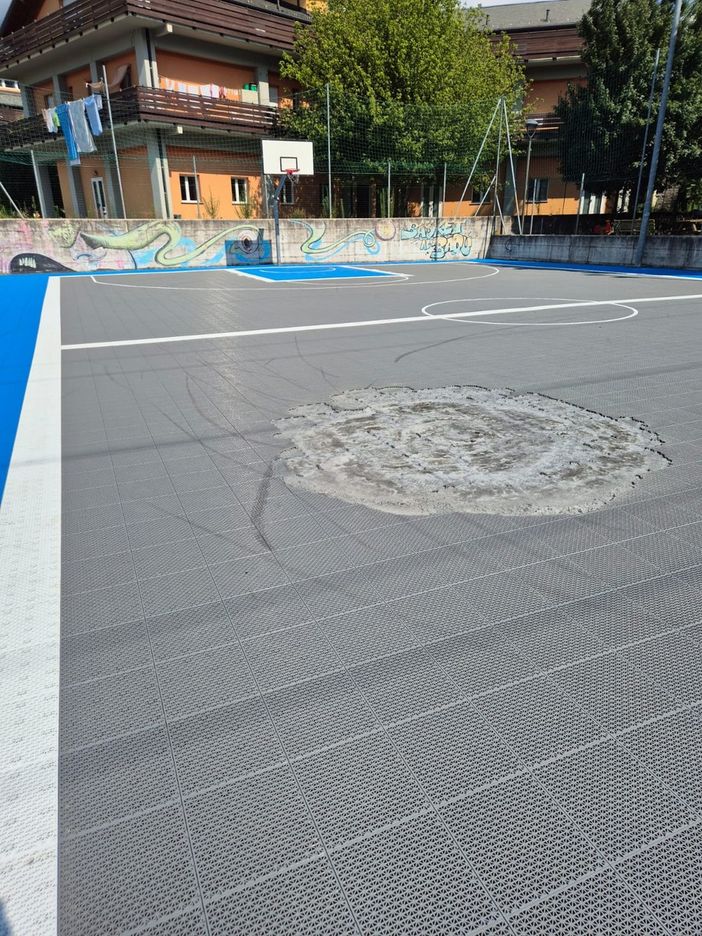 Un grave atto vandalico ha colpito il nuovo campetto da basket del Badulerio a Domodossola, inaugurato appena un mese fa e già diventato punto di riferimento per gli appassionati della zona. Nella notte tra venerdì 11 e sabato 12 luglio, intorno a mezzanotte, alcuni ragazzi si sono introdotti nell’area in bicicletta, lasciando segni evidenti sul terreno di gioco. Poco dopo è stata lanciata una molotov artigianale – una bottiglietta riempita di alcol – che ha innescato un incendio danneggiando la superficie del campo.