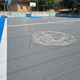 Una bottiglia incendiaria lanciata sul campo da basket del Badulerio FOTO