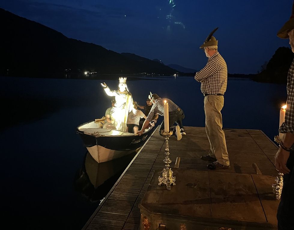 La tradizione, ripresa in via stabile dal 2022, affonda le proprie radici nell’antica usanza di accogliere in barca le autorità civili e religiose in visita al borgo. Nell’ambito della manifestazione, il parroco don Massiliano Maragno procederà alla benedizione delle barche e del lago invocando sull’abitato e sulla popolazione la protezione della Vergine.