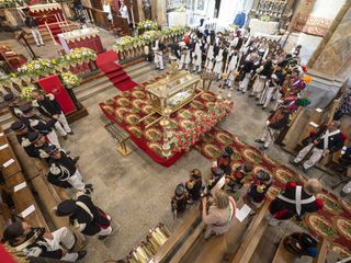 Nel corso della giornata, la Milizia Tradizionale di Calasca ha attribuito a Renato Lometti, direttore per 48 anni, il titolo di “direttore onorario perpetuo”. La giornata si è conclusa con un momento conviviale.