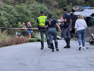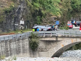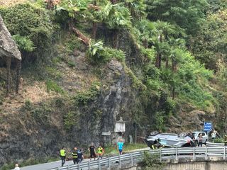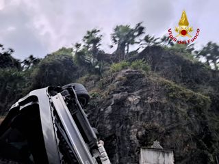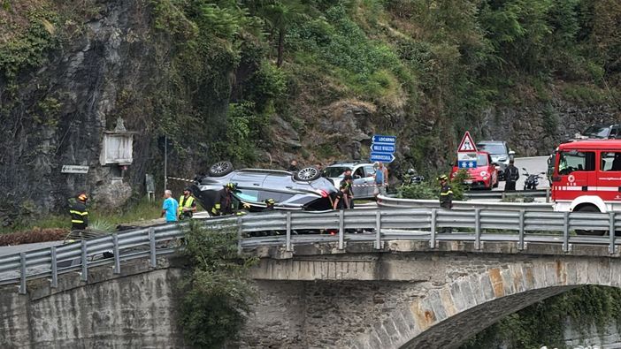Grave incidente a Masera poco dopo le 19.30. Un suv è precipitato dal cortile di una villa che sovrasta la strada all'altezza del ponte che porta in paese. L'auto sarebbe volata sulla strada abbattendo diverse piante che si trovavano sulla massicciata terminandola sua corsa capovolta su un fianco.