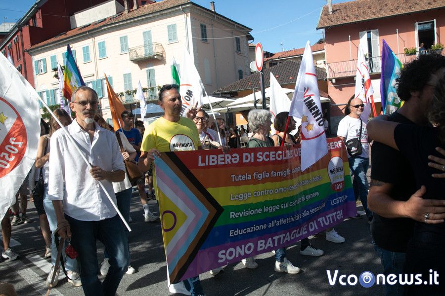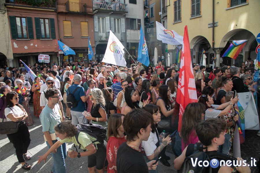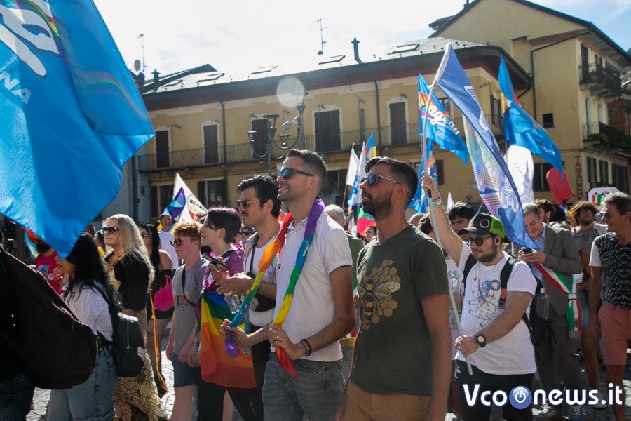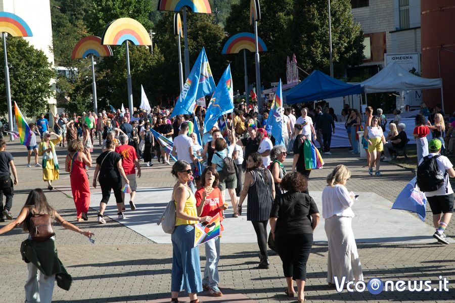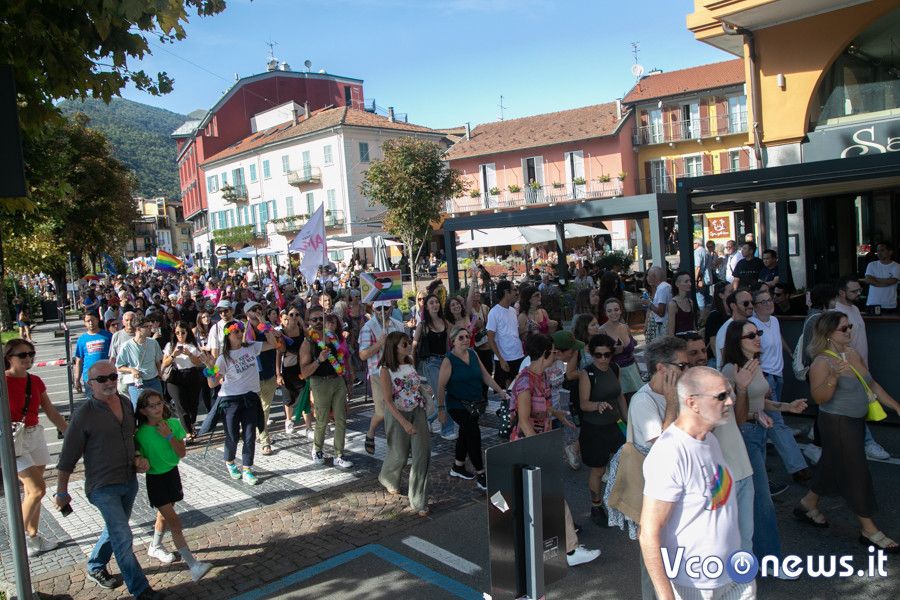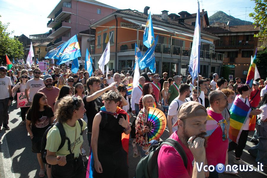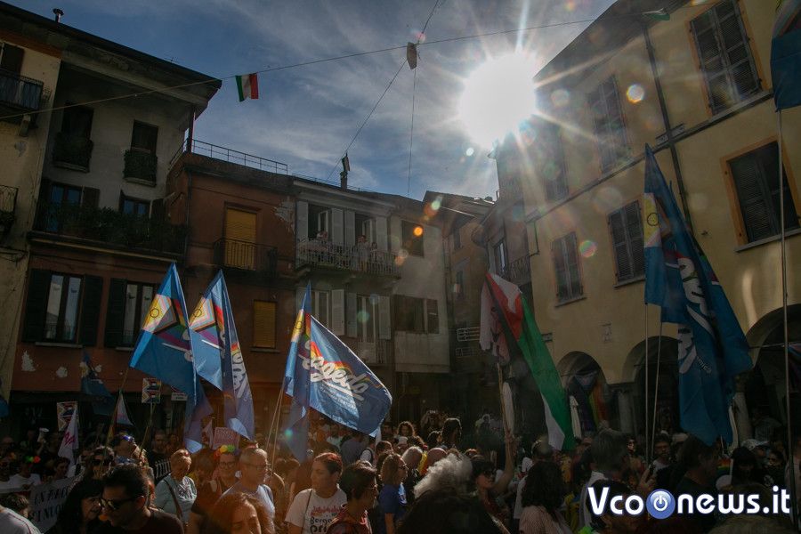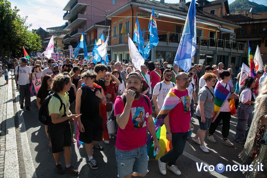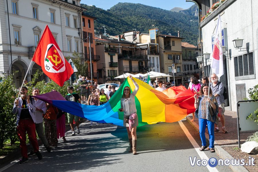 Un corteo pacifico, colorato, chiassoso e rispettoso. Il primo Vco Pride, accompagnato da tante polemiche politiche e da quelle legate alla viabilità, ha avuto una buona adesione. Circa settecento i partecipanti che, puntuali come un orologio svizzero, sono partiti alle 16.00 in punto dalla zona dei giardini pubblici di Omegna per attraversare la città. Tutto si è svolto senza eccessi e senza problemi, tra canti, bandiere arcobaleno e della pace, qualcuna di partito e del sindacato oltre che della Palestina. Le note di alcune canzoni dell’orgoglio pride a fare da sottofondo, tra sguardi curiosi della gente a bordo strada, anche per il clamore che ha accompagnato la manifestazione. Il rosa il colore predominante, indossato con orgoglio: in prima fila al corteo l’assessore alla cultura del comune di Omegna Mimma Moscatiello.