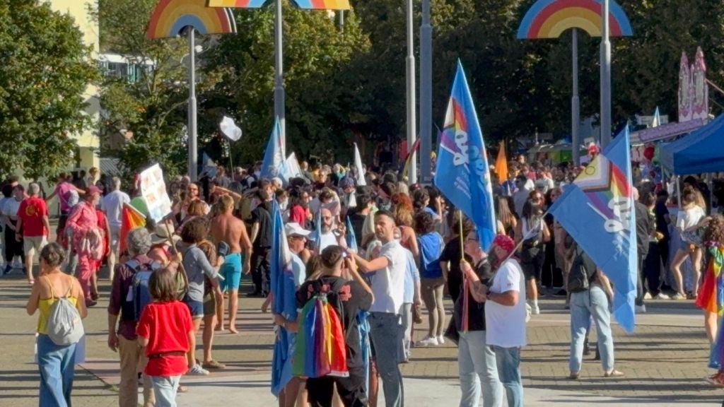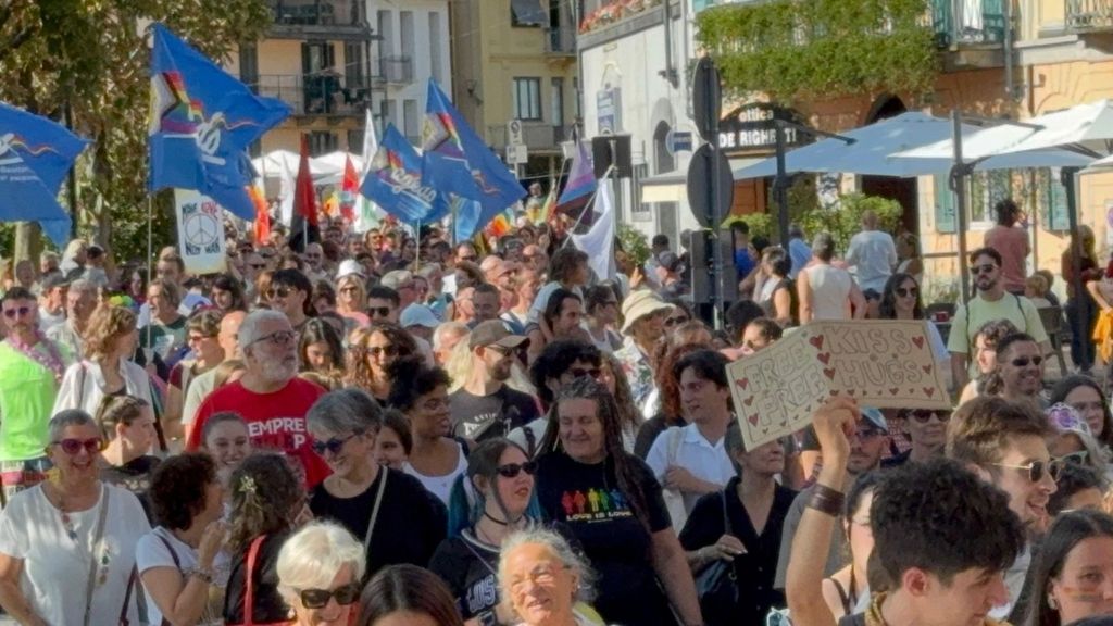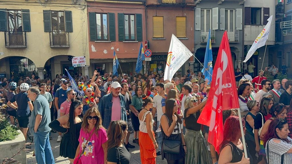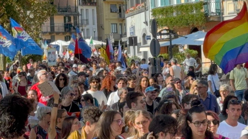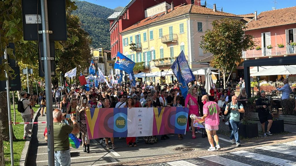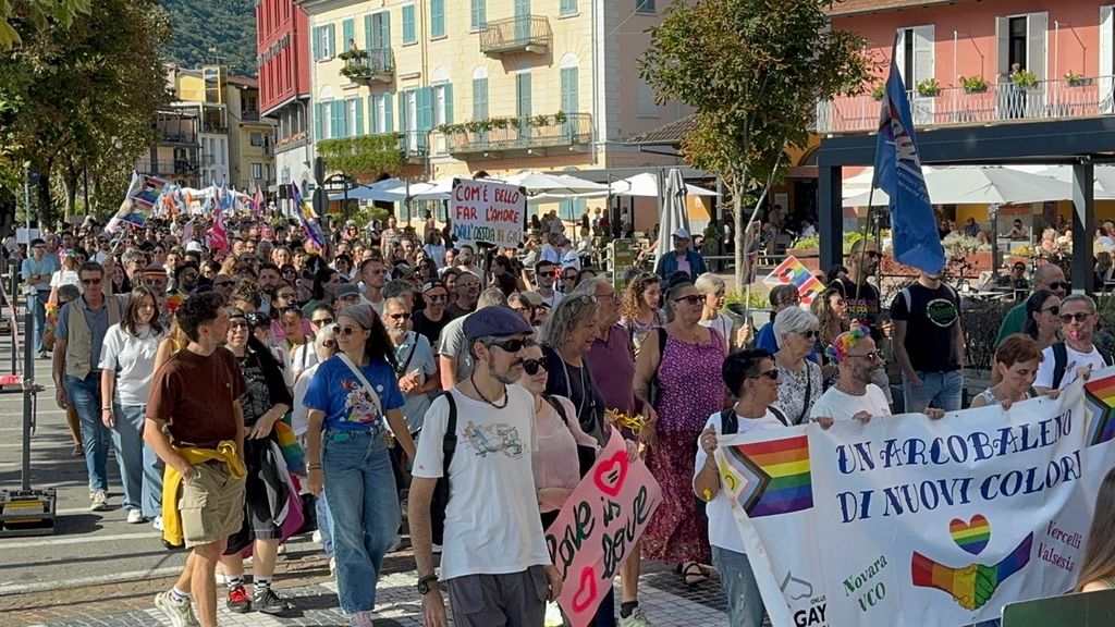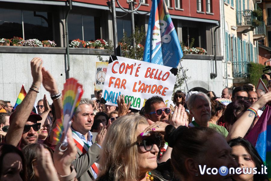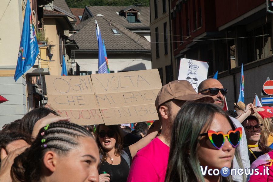 Un corteo pacifico, colorato, chiassoso e rispettoso. Il primo Vco Pride, accompagnato da tante polemiche politiche e da quelle legate alla viabilità, ha avuto una buona adesione. Circa settecento i partecipanti che, puntuali come un orologio svizzero, sono partiti alle 16.00 in punto dalla zona dei giardini pubblici di Omegna per attraversare la città. Tutto si è svolto senza eccessi e senza problemi, tra canti, bandiere arcobaleno e della pace, qualcuna di partito e del sindacato oltre che della Palestina. Le note di alcune canzoni dell’orgoglio pride a fare da sottofondo, tra sguardi curiosi della gente a bordo strada, anche per il clamore che ha accompagnato la manifestazione. Il rosa il colore predominante, indossato con orgoglio: in prima fila al corteo l’assessore alla cultura del comune di Omegna Mimma Moscatiello.