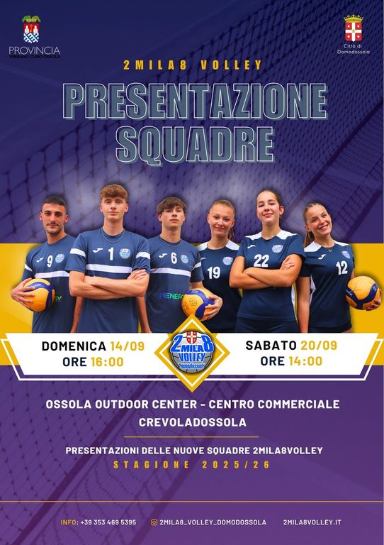 Con l’arrivo di settembre si avvicina sempre di più l’inizio della nuova stagione sportiva pallavolistica e l’asd 2mila8volley Domodossola è pronta ad avviare una stagione ricca di impegni e che si prospetta molto ambiziosa.