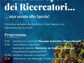 Nella giornata di oggi il Liceo “Giorgio Spezia” di Domodossola apre le porte alla Notte Europea dei Ricercatori, l’iniziativa promossa dalla Commissione Europea dal 2005 che ogni anno coinvolge migliaia di ricercatori in tutta Europa, con l’obiettivo di avvicinare cittadini e scienza in un contesto informale e stimolante.