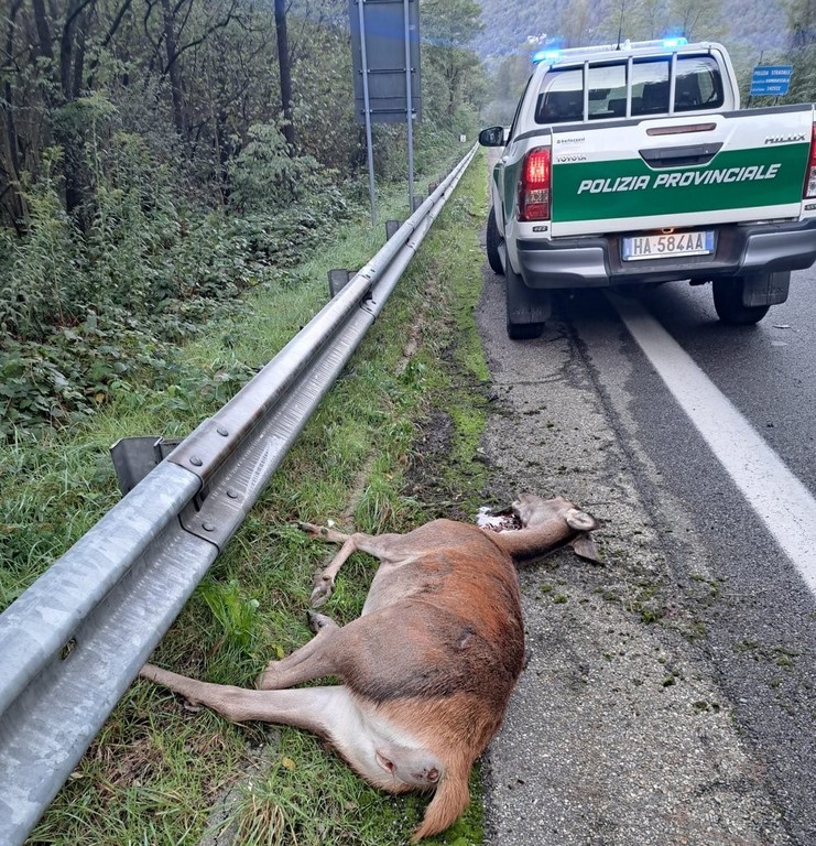 Sul posto la polizia provinciale che ha rimosso la carcassa dell'animale.