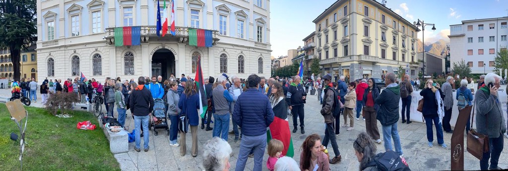 Erano oltre 250 le persone che si sono ritrovate ieri pomeriggio in piazza Repubblica dell’Ossola a Domodossola per una manifestazione silenziosa a sostegno della popolazione di Gaza. L’iniziativa, convocata dal Comitato ossolano per Gaza in adesione all’appello della Flotilla, ha riempito il cuore della città con bandiere arcobaleno e cartelli che chiedevano a gran voce il cessate il fuoco.
