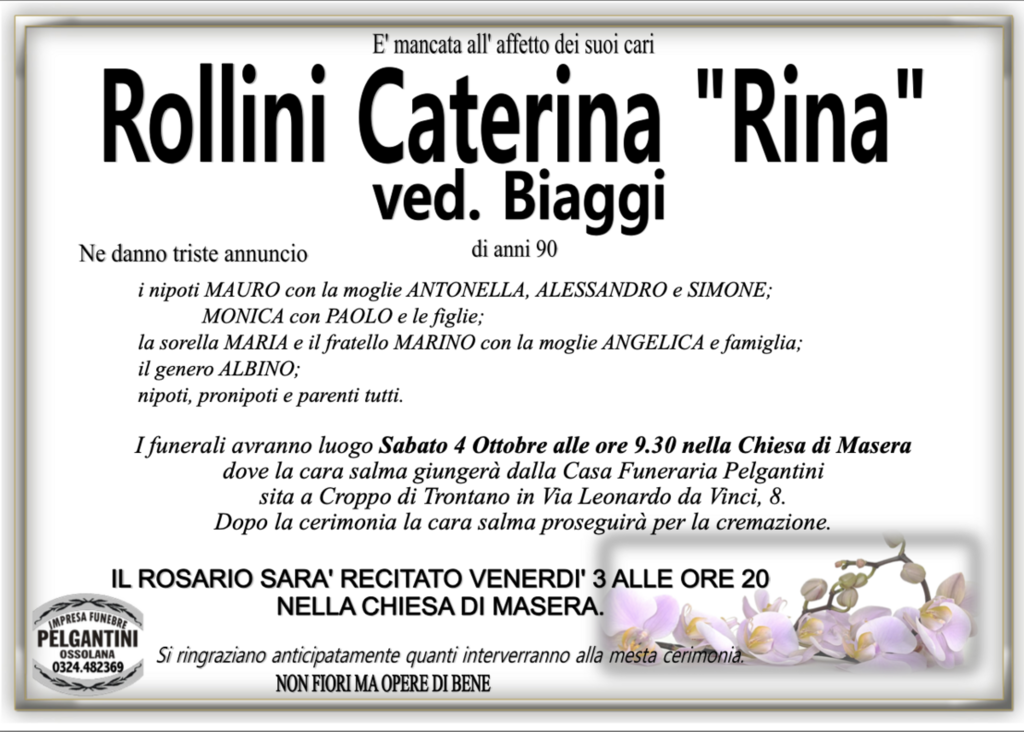 Rollini Cateria "Rina" ved. Biaggi di anni 90