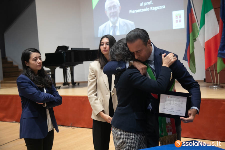 Il premio Repubblica partigiana dell’Ossola è stato dunque consegnato dal primo cittadino alla moglie di Pier Antonio Ragozza, la dottoressa Maria Grazia Federico, insieme alle figlie Ilaria e Benedetta. La decisione di assegnare il riconoscimento alla memoria del professore è stata unanime, da parte della commissione, è stata unanime. Queste le motivazioni, lette dal sindaco Pizzi, che hanno portato per la prima volta all’assegnazione del premio alla memoria: “Pier Antonio Ragozza è stato studioso, dirigente scolastico e componente della commissione fin dalla sua fondazione, già componente del comitato scientifico dell’istituto storico della Resistenza “Piero Fornara” e della Casa della Resistenza di Verbania. Il suo impegno nella ricerca lo ha portato ad approfondire temi come la storia militare, l’antropologia alpina, la storia delle fortificazioni. Si era laureato in giurisprudenza con una tesi sulla Repubblica partigiana dell’Ossola, mostrando fin da studente l’interesse e la conoscenza per questa terra. per le sue capacità aveva ottenuto il ruolo di consigliere qualificato in diritto internazionale dei conflitti armati. La sua improvvisa scomparsa ha lasciato un vuoto nella comunità ossolana”.