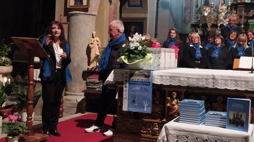Cortella si è quindi soffermato sulla collaborazione e sul contributo del comune e delle associazioni di Trontano per la realizzazione del libro e ha ringraziato poi in particolare Pier Franco Midali per il lavoro svolto. La corale fu creata 15 anni fa con lo scopo di accompagnare le celebrazioni liturgiche più importanti del paese.