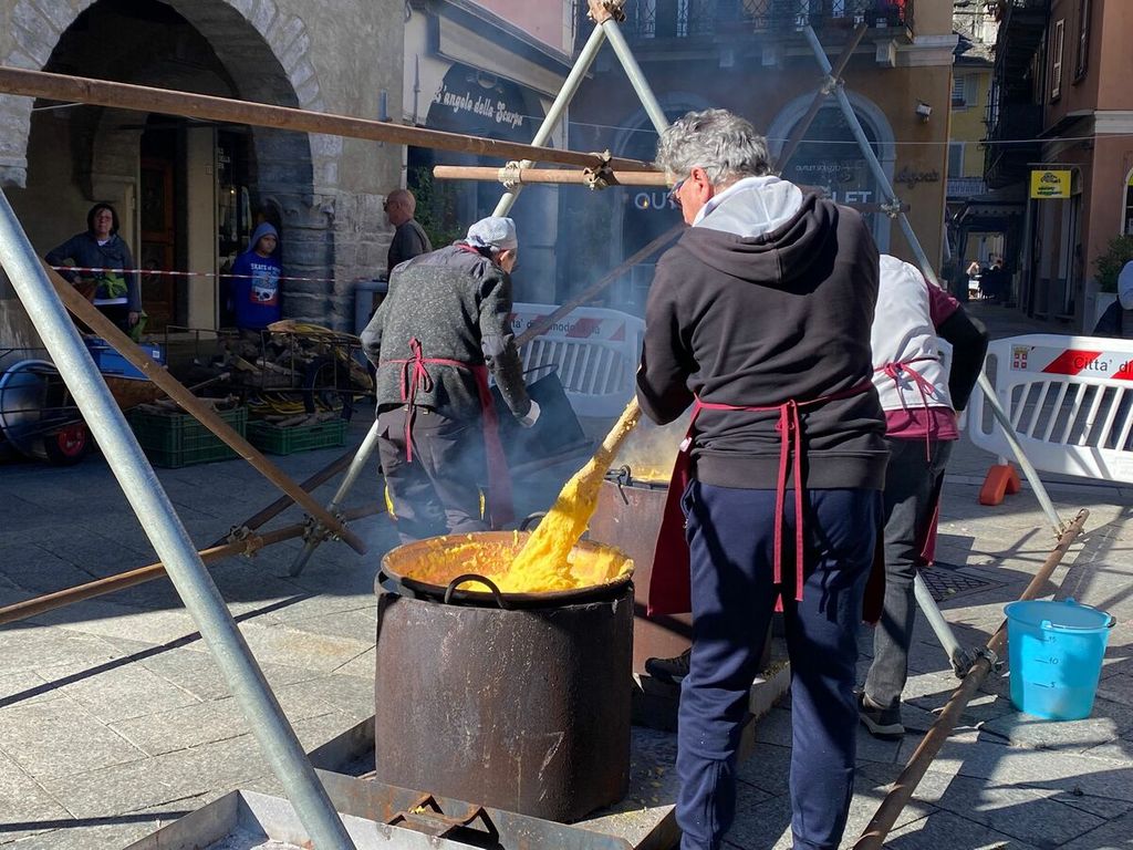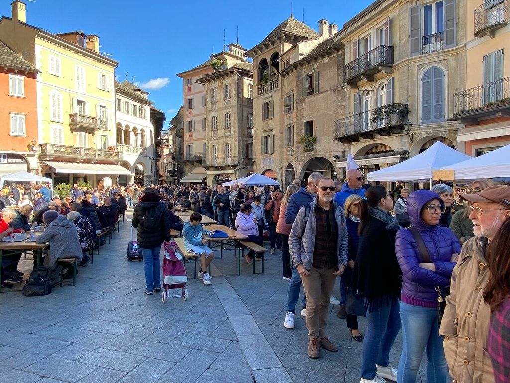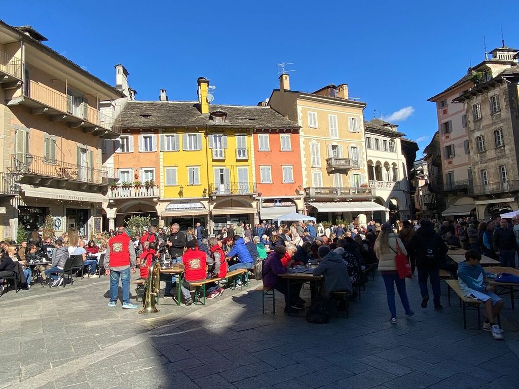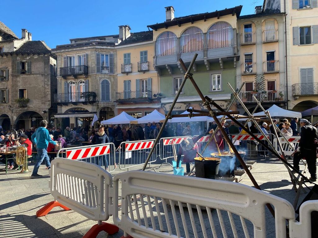 La giornata si è aperta infatti con il banchetto delle torte e, a pranzo, è stata servita la tradizionale polenta con spezzatino, salamini e gorgonzola. Nel pomeriggio, merenda per tutti a base di stinchett vigezzini e castagne, con giochi e divertimento per tutte le età, oltre alla musica dal vivo. La piazza era gremita, con i tavoli allestiti per il pranzo e la merenda e le bancarelle con prodotti tipici a chilometro zero.