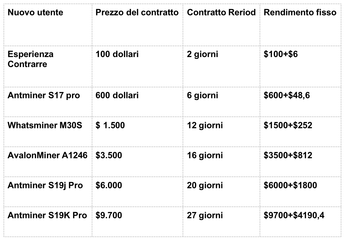 2. Scegli un contratto di mining : la piattaforma offre una varietà di piani di cloud computing ad alte prestazioni e alto rendimento. Questi contratti variano in termini di scalabilità della potenza di calcolo e ciclo di vita di utilizzo, con conseguenti rendimenti corrispondenti.