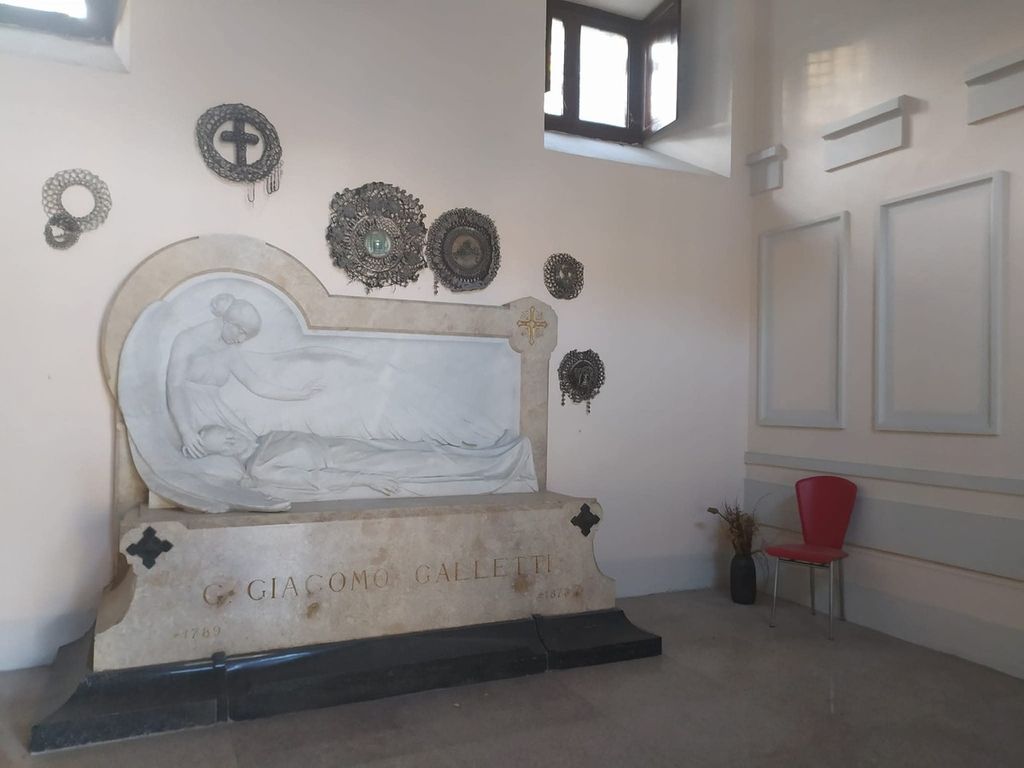 Nel famedio si trova il monumento funebre del benefattore finanziere e politico Gian Giacomo Galletti. È ricordato il generale Giovan Battista Chiossi: combattente decorato nelle guerre coloniali, nella prima guerra mondiale raggiunse il grado di generale e in seguito fu sindaco di Domodossola. Nel famedio è poi ricordato Francesco Scaciga della Silva, storico e giornalista. Delle lapidi ricordano i martiri del 1798 e il prefetto di Novara Giuseppe Ristagno. L'ultima lapide posta nel famedio da parte del comune, nel 2016, fu quella in memoria di Gisella Floreanini, prima donna ministro in Italia durante la Repubblica dell’Ossola. Il famedio sarà aperto fino al 4 novembre dalle 8.00 alle 12.00 e dalle 14.00 alle 18.00. Durante l'anno viene aperto dal custode solo su richiesta.