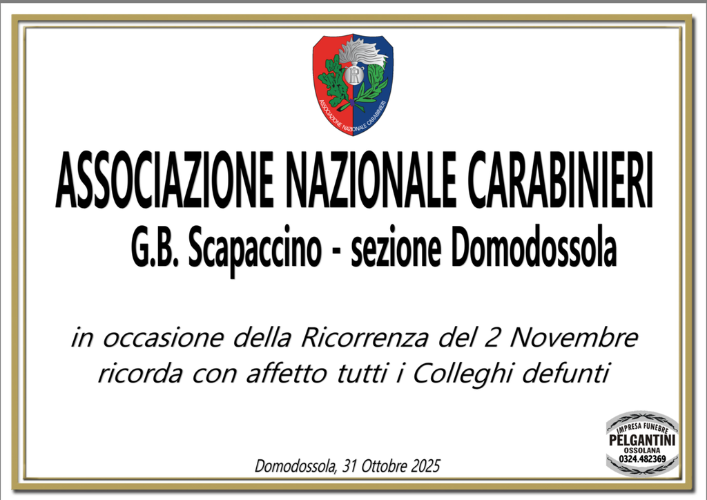 Associazione Nazionale Carabinieri ricorda tutti i colleghi defunti