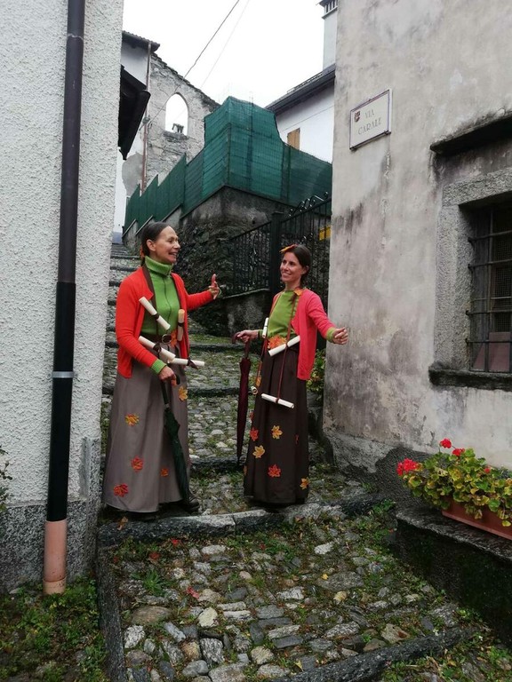 “Domenica mattina - spiegano gli organizzatori - in un'atmosfera suggestiva, con una leggera pioggerella e la nebbia a far intravedere i mille colori e tonalità dei boschi d'intorno, Sara Tadina e Danila Massari hanno accompagnato i partecipanti in un percorso attraverso il paese, raccontandone la storia, dalla meridiana della parrocchiale all'oratorio di San Rocco, dal Castello di Vallaro al Museo, con narrazioni, musiche e danze.