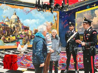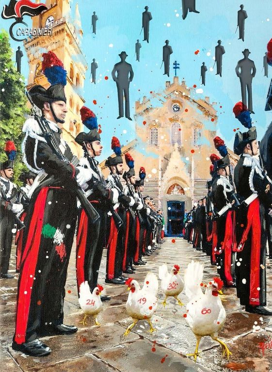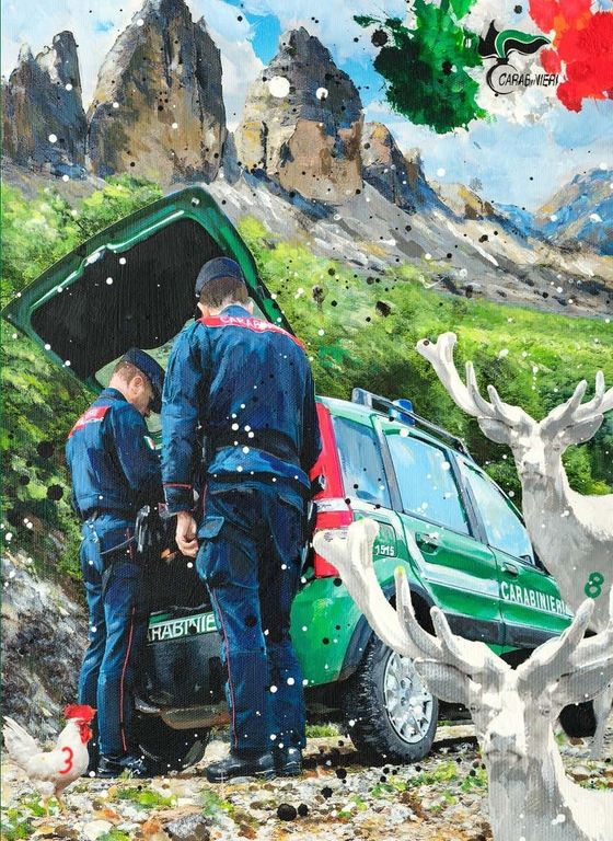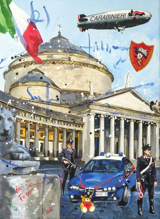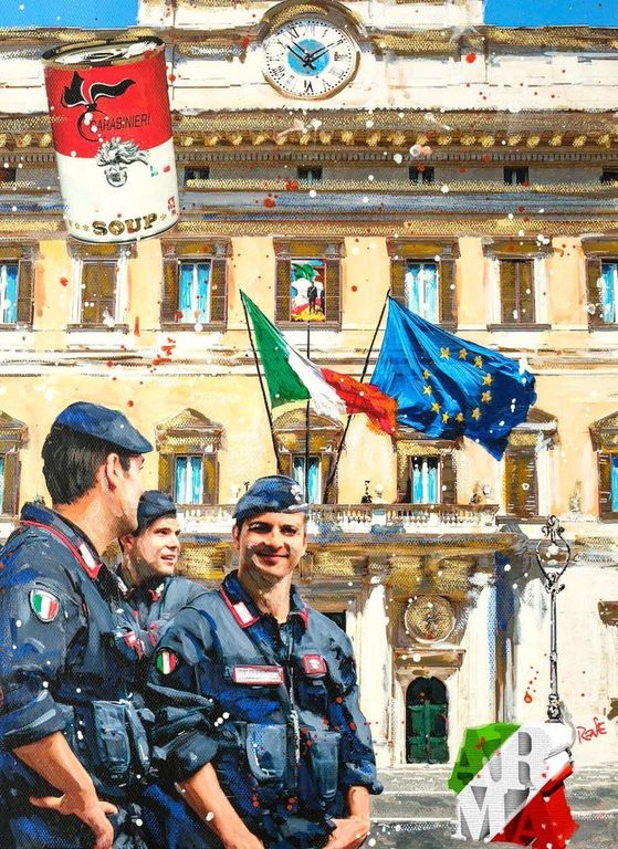 Le tavole, realizzate dall’artista René (Luigi Valeno), maestro della nuova pop art italiana, rappresentano con uno stile vivace e luminoso i carabinieri protagonisti della vita quotidiana del Paese. Ogni immagine mostra uomini e donne dell’arma nel pieno del loro servizio — tra la gente, nei centri urbani, nei paesaggi naturali e nei luoghi simbolo della cultura italiana — restituendo un’idea di presenza costante, dedizione e vicinanza al Paese. Le opere di René trasformano così il linguaggio della pop art in un omaggio alla quotidianità dei Carabinieri, celebrandone l’impegno, la professionalità e lo spirito di umanità che da sempre ne contraddistinguono la missione. I testi che accompagnano le diciannove tavole, affidati ancora una volta alla penna di Maurizio De Giovanni, costituiscono un racconto unitario, sviluppato attraverso la lettera di un giovane carabiniere, appena arruolato, che racconta ai suoi genitori le ragioni della sua scelta e l’esempio che ne trae. In essa il militare, con voce sincera e partecipe, narra episodi di generosità, slancio e altruismo che riassumono le difficoltà e le soddisfazioni di una scelta di vita fondata sul servizio al prossimo ed alla Nazione e le responsabilità di questa missione. Le parole del giovane, intrise di entusiasmo e di rispetto per la divisa, si intrecciano con episodi di altruismo e coraggio tratti dalla quotidianità, restituendo un mosaico di umanità e dedizione. Ogni tavola è così associata a un momento di crescita personale e professionale: un salvataggio, un gesto di solidarietà, una presenza discreta accanto a chi soffre, un’azione che riafferma la missione dei carabinieri come presidio di legalità e vicinanza alla popolazione. I testi diventano un viaggio nel cuore dell’Istituzione, un percorso che racconta non solo il mestiere del carabiniere ma anche la dimensione umana di chi lo interpreta. Il filo conduttore è la cura, intesa come dedizione quotidiana e silenziosa verso il prossimo. Le storie del giovane carabiniere si trasformano così in un dialogo affettuoso e morale con i suoi genitori, ma anche in un messaggio universale ai cittadini, un invito a credere nella bontà, nel coraggio e nella forza discreta di chi serve lo Stato con passione e onore. In ciascuna tavola, la parola si unisce all’immagine per esaltare il senso profondo della divisa: essere accanto a chi ha bisogno, in ogni circostanza, come autentici “eroi quotidiani”.