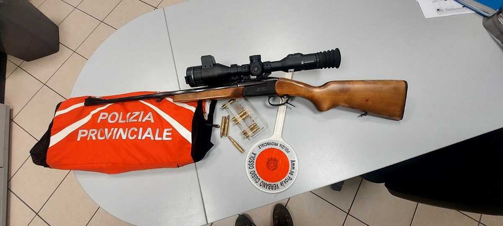 Da un controllo del veicolo fuoristrada utilizzato dai due soggetti fermati, gli agenti hanno notato che vi era a bordo un fodero di un fucile ma risultava mancante l'arma che avrebbe dovuto essere lì riposta. Alla richiesta di tale mancanza i soggetti asserivano che fosse ancora a casa e che la loro presenza in zona anticipava solamente la giornata di caccia quando sarebbero poi andati a recuperare le armi a casa. Gli agenti hanno finto di credere alla versione fornita dai fermati e dopo averli identificati hanno lasciato che i due soggetti si dileguassero a bordo del veicolo. La pattuglia ha subito pensato che la versione fornita dai controllati non fosse credibile e cosi hanno ispezionato attentamente la zona boscata dove i due soggetti erano stati fermati per il controllo. La polizia provinciale ha infatti rinvenuto abbandonato nel bosco una carabina tipo basculante con il colpo in canna e con un’ottica di puntamento per la visione notturna.