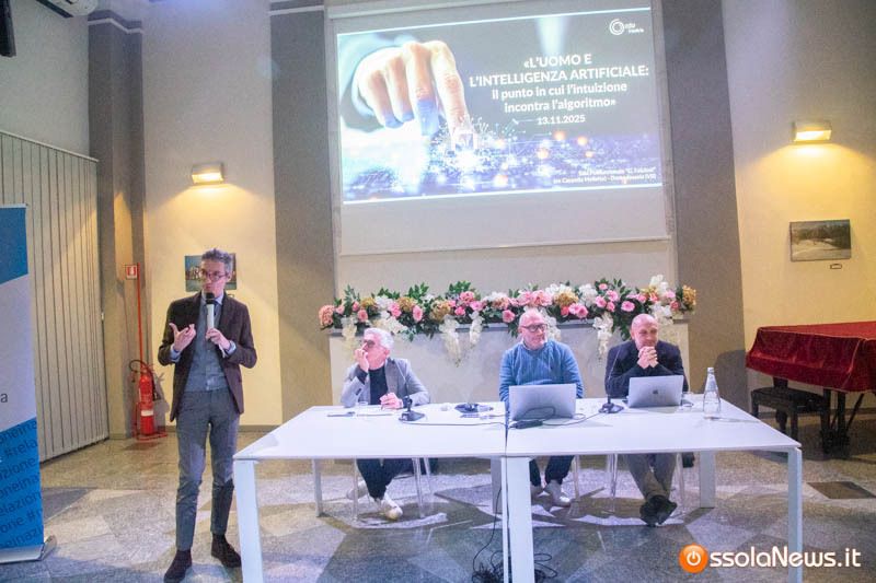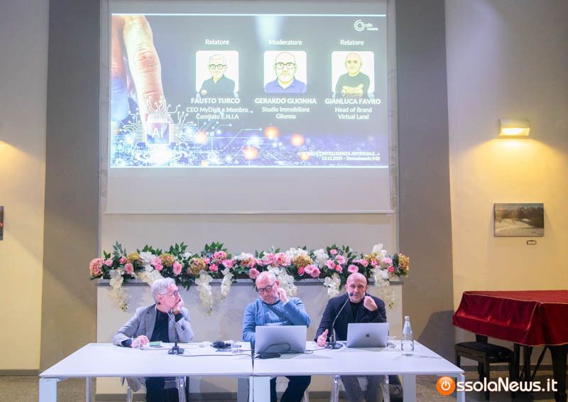 Riflettere sul ruolo dell’essere umano nell’epoca dell’intelligenza artificiale. È il tema affrontato dalla Compagnia delle Opere Insubria nel convegno organizzato nella sala Falcioni (ex Cappella Mellerio) di Domodossola e rivolto al mondo imprenditoriale del territorio del Vco. Una serata partecipata, che ha visto come relatori Fausto Turco, amministratore delegato di MyDigit e membro del comitato Enia, e Gianluca Favro, head of brand di Visual Land; a moderare gli interventi Gerardo Glionna dello studio immobiliare Glionna di Domodossola.