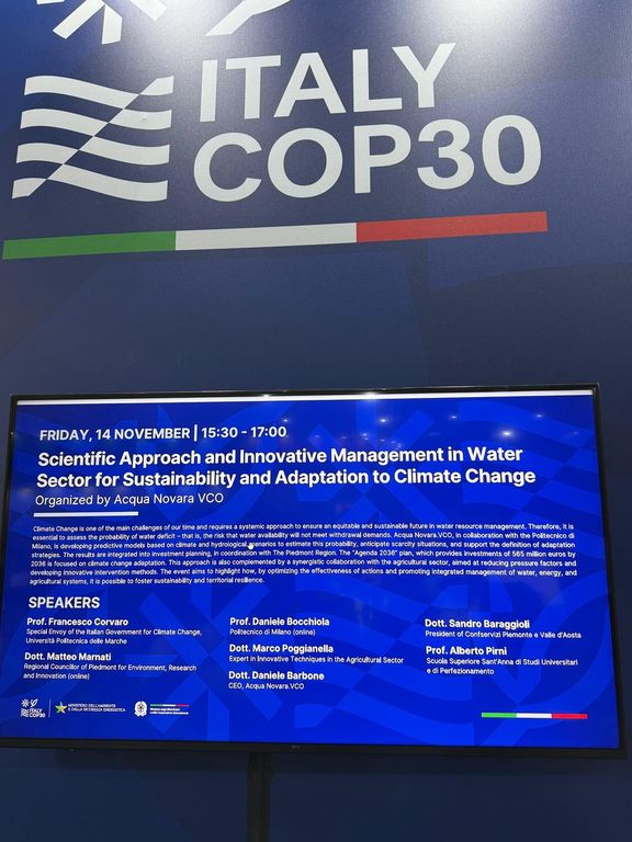 Nel quadro dei lavori della Cop30, il padiglione italiano ha ospitato ieri un evento dedicato agli investimenti per l’adattamento al cambiamento climatico, organizzato in collaborazione con Acqua Novara.VCO. L’iniziativa ha evidenziato come la definizione delle politiche e delle infrastrutture per la gestione della risorsa idrica debba necessariamente poggiare su dati solidi e su un approccio scientifico rigoroso.