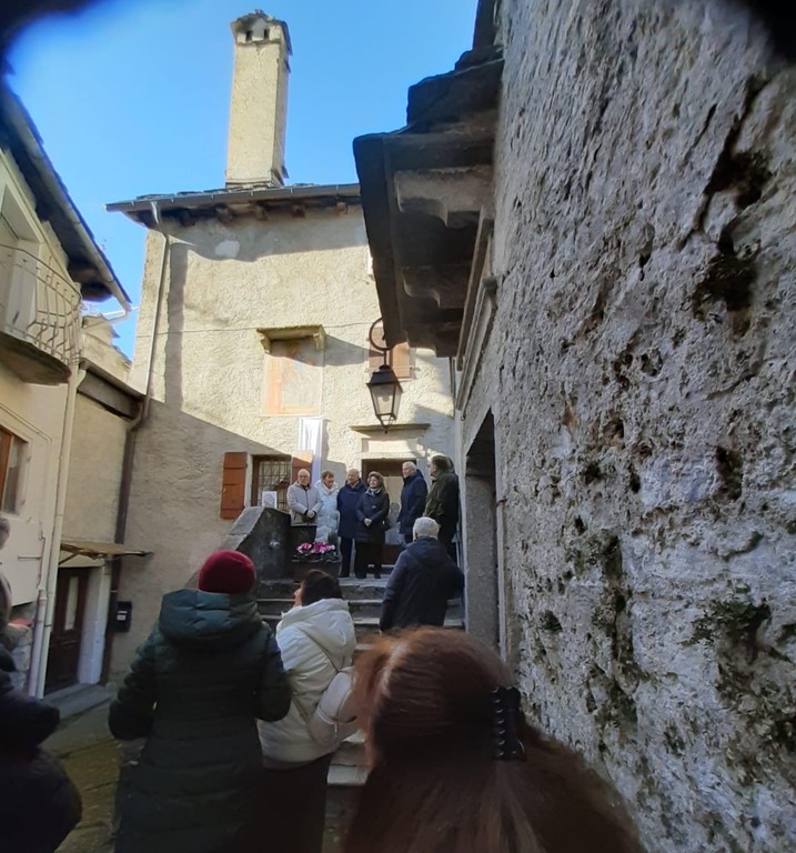 “Negli anni Ottanta abbiamo acquistato questa casa, affinché fosse un buon retiro vicino a Busto. Angelo negli ultimi anni ha trovato qui un luogo sereno dove ha potuto dedicarsi ai suoi studi. Era molto affezionato a Craveggia” ha spiegato Luciana Ruffinelli. L’affresco è stato benedetto da don Gabriele Vitiello. “Questo recupero conservativo è un valore aggiunto per la storia di Craveggia” ha evidenziato il sindaco Paolo Giovanola.