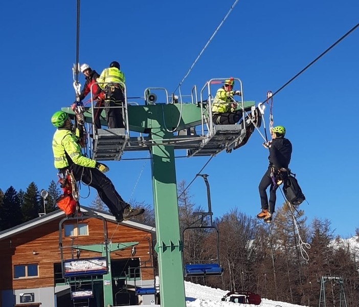 Come ogni anno, ad inizio stagione sciistica, i volontari del Soccorso Alpino insieme al personale dipendente della stazione sciistica di Domobianca e con il Soccorso Alpino della guardia di finanza, hanno oggi effettuato un esercitazione di scarico impianti.