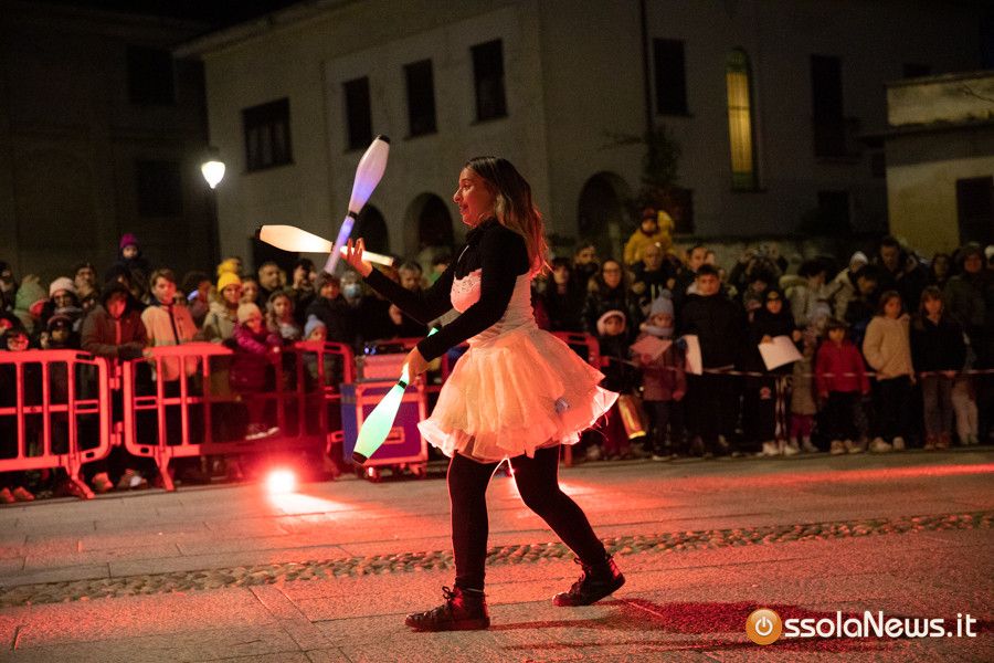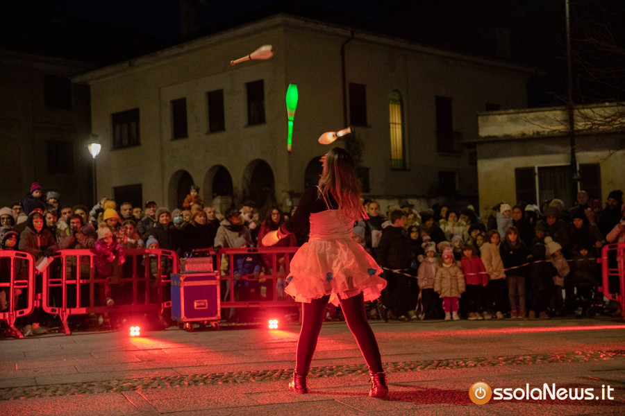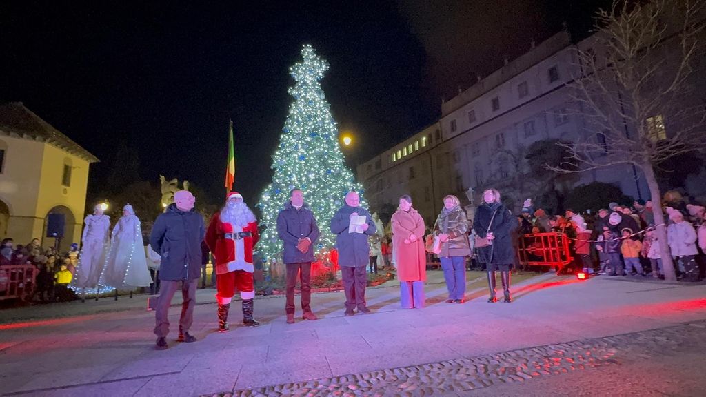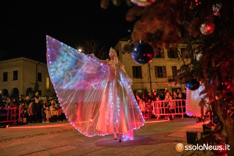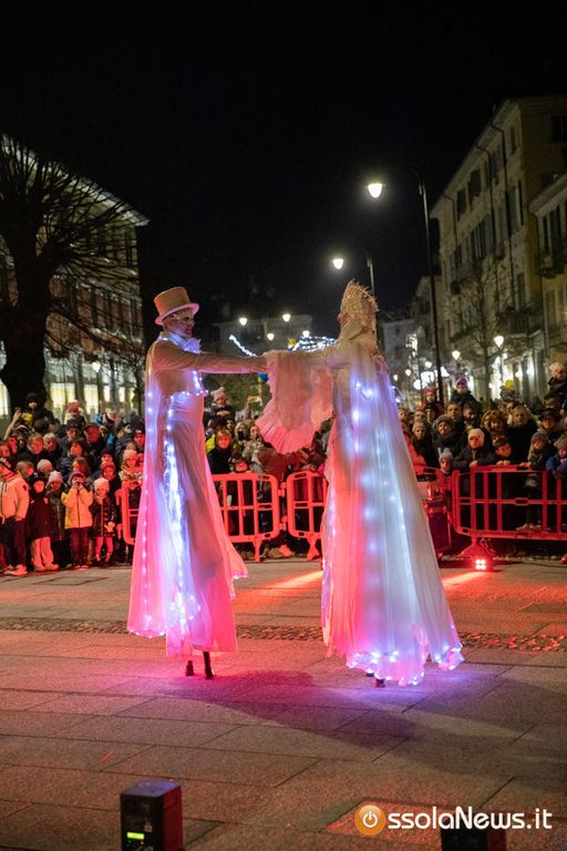 Una cerimonia come sempre molto partecipata, animata da giocolieri, artisti e trampolieri con abiti luminosi e l’immancabile arrivo di Babbo Natale. Ad accendere l’albero, come di consueto, il sindaco Lucio Pizzi, presente all’evento insieme all'assessore Gabriella Giacomello e all'assessore GIanluca Iervasi, oltre alla presidente del consiglio domese Angela Tripodi e la consigliera di maggioranza Paola Besana. L'accensione dell'albero è stata preceduta dalla benedizione impartita dal parroco don Vincenzo Barone.