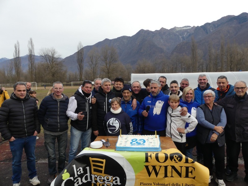 La festa è stata allietata dalla musica di Macho, nel pomeriggio giochi per i più piccoli e l’arrivo di Babbo Natale, impersonato dall’immancabile tifoso “Riri” Zaretti, che ha distribuito dolciumi a tutti i bambini presenti. Ha chiuso la bella giornata il taglio della torta celebrativa dell’ottantesimo, preceduto da un breve discorso del Presidente Vincenzo Bruno e da alcuni interventi dei presenti: i saluti di Benedetto Madeo a nome della Figc provinciale (rappresentata anche da Fausto Sgrò, Daniele Santarosa e Maurizio Iulita), gli interventi dello storico dirigente Giuseppe D’Amelio e dell’autore del libro sulla formazione villadossolese Marco Barbetta, che ha ricordato come la Virtus Villa sia l’unica società dilettantistica piemontese in attività a non avere mai saltato un campionato dal dopoguerra a oggi, senza aver mai subito fusioni e fallimenti.