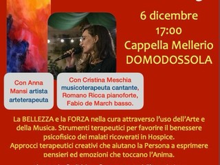 Domani, sabato 6 dicembre, a partire dalle ore 17 presso la Sala Falcioni (ex Cappella Mellerio) di Domodossola, si terrà “Suoni a Colori – Musica e Colore in Dialogo”, l’evento organizzato dall’Associazione Angeli dell’Hospice VCO ODV in collaborazione con la musicoterapeuta Cristina Meschia e l’arteterapeuta Anna Mansi.