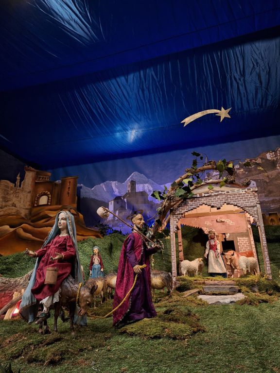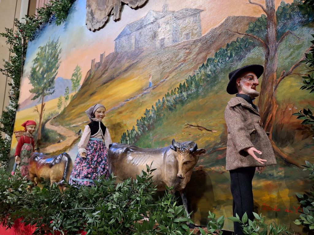 Si tratta di un presepe sette-ottocentesco di straordinario valore storico e artistico, composto da 43 personaggi, 29 animali e 38 accessori, scolpiti in legno policromo con arti snodati e abiti d’epoca. Le statue provengono dall’area bavarese di Berchtesgaden e furono acquistate storicamente a Norimberga da un commerciante villadossolese.