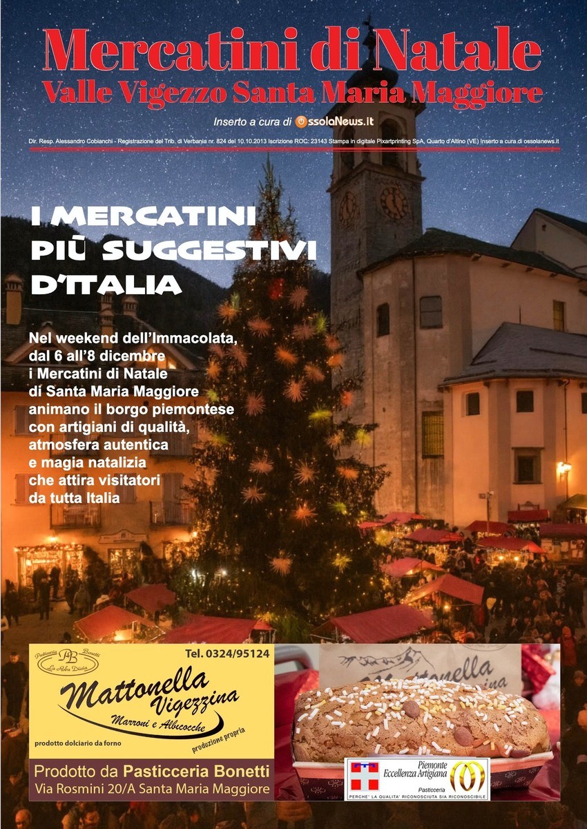 Torna, da sabato 6 a lunedì 8 dicembre, uno dei mercatini natalizi più famosi e apprezzati d’Italia e d’Europa. La 26ª edizione del Mercatino di Natale di Santa Maria Maggiore ospiterà oltre 200 espositori selezionati con cura, tra bancarelle tradizionali e chalet in legno, oltre a quaranta produttori enogastronomici provenienti dalle valli del Verbano Cusio Ossola.