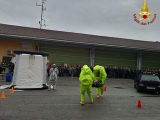 Un saggio delle professionalità dei vigili del fuoco nel gestire un rilascio chimico di sostanza tossica e la calata della bandiera italiana dal castello di manovra con tecniche di derivazione speleo-alpino-fluviali alla presenza delle autorità hanno concluso la mattinata.