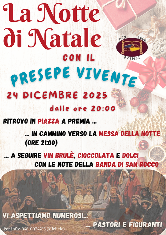 Premia si prepara a vivere una delle serate più sentite dell’anno con “La notte di Natale”, in programma mercoledì 24 dicembre 2025. Un appuntamento che unisce fede, tradizione e spirito di comunità, capace ogni anno di coinvolgere grandi e piccoli.