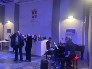 Nel pomeriggio, alla Cappella Mellerio, Vanda Cecchetti, presidente della Pro Loco Domodossola, ha coinvolto il presidente kiwaniano nel racconto “Il Ciuchino di Santa Lucia”, chiedendogli di interpretare il personaggio principale. L’occasione di tornare bambino non è sfuggita al presidente del Kiwanis domese, che prontamente ha indossato le orecchie d’asino, partecipando con entusiasmo e simpatia alla recita. A seguire, il duo jazz Monica Delfina Morellini & Pietro Tonelli ha chiuso questa due giorni prenatalizia con un concerto di grande eleganza, capace di creare un’atmosfera intima e avvolgente, che ha conquistato il pubblico e si è concluso tra calorosi applausi.