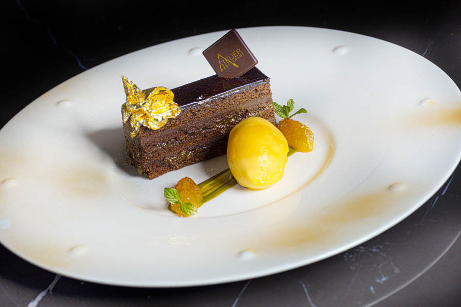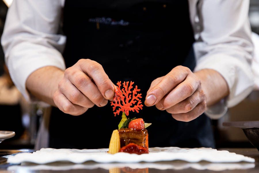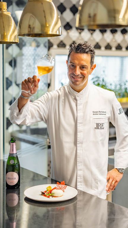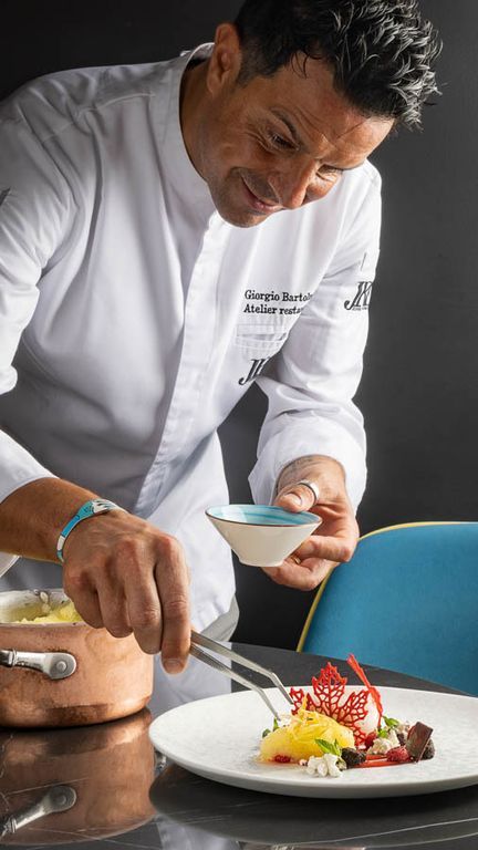 L’Atelier, invece, è una vera esperienza da vivere senza fretta. Con i suoi 28 coperti, è aperto solo la sera e la domenica a pranzo. Qui il tempo sembra rallentare: si comincia con il benvenuto e un calice di champagne, poi una sequenza di rituali, passaggi e attenzioni che ricordano le grandi tavole francesi. L’ospite viene accompagnato con discrezione, senza invadenza, per sentirsi sempre a proprio agio. “Chi viene da noi deve portare a casa un ricordo: di un piatto, di un vino, dell’accoglienza ricevuta - racconta lo chef - All’Atelier il tempo si ferma, ed è questo il vero lusso”.